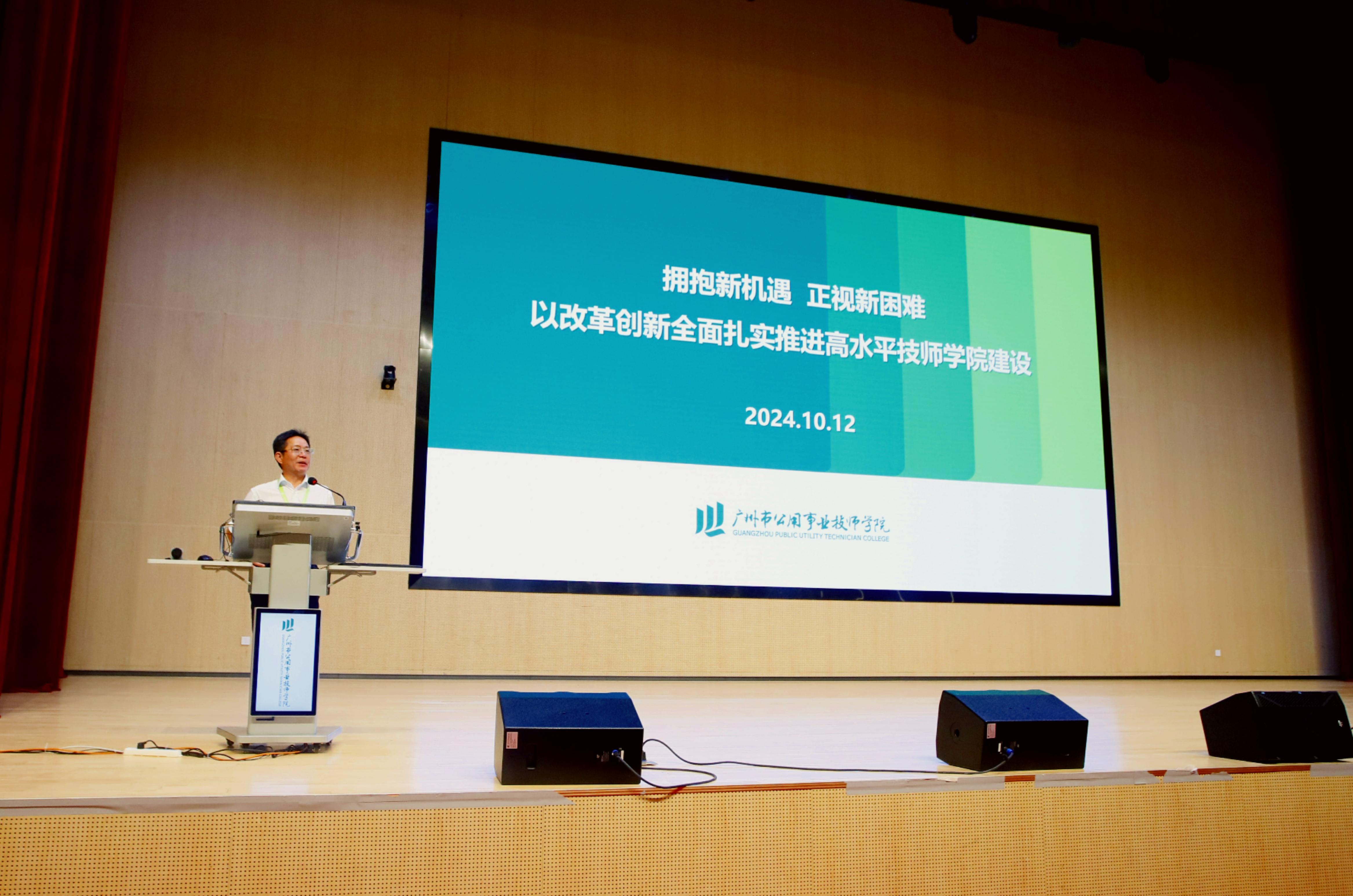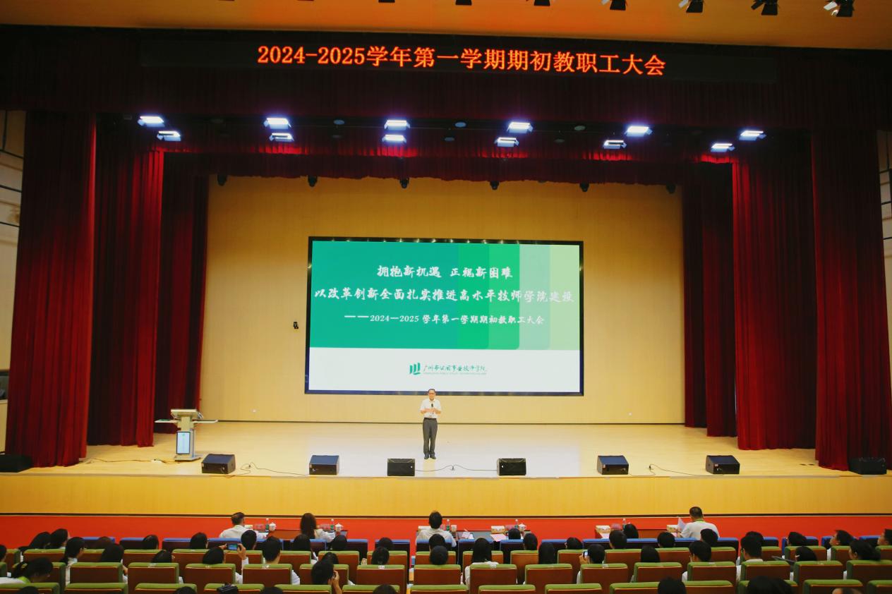10月12日,学院在科教城校区召开2024-2025学年第一学期期初教职工大会,会议围绕“拥抱新机遇,正视新困难,以改革创新全面扎实推进高水平技师学院建设”主题展开。全体教职工参加会议。行政办公室主任李照勋介绍了2024年公开招聘入职的新教师。学生、后勤、人事工作部门负责人及分管院领导汇报新学期工作计划。鲁储生院长和邹菁书记讲话。