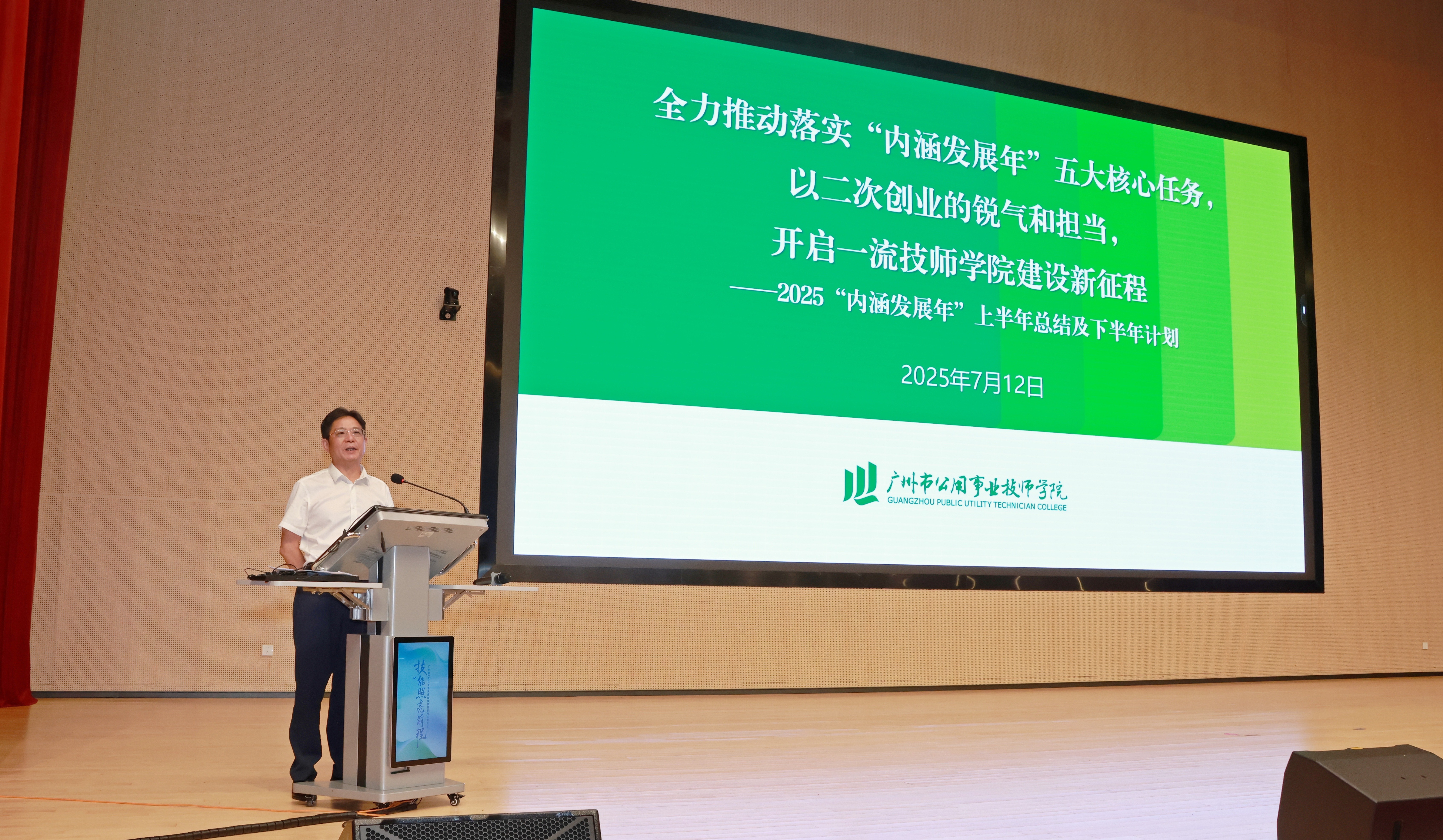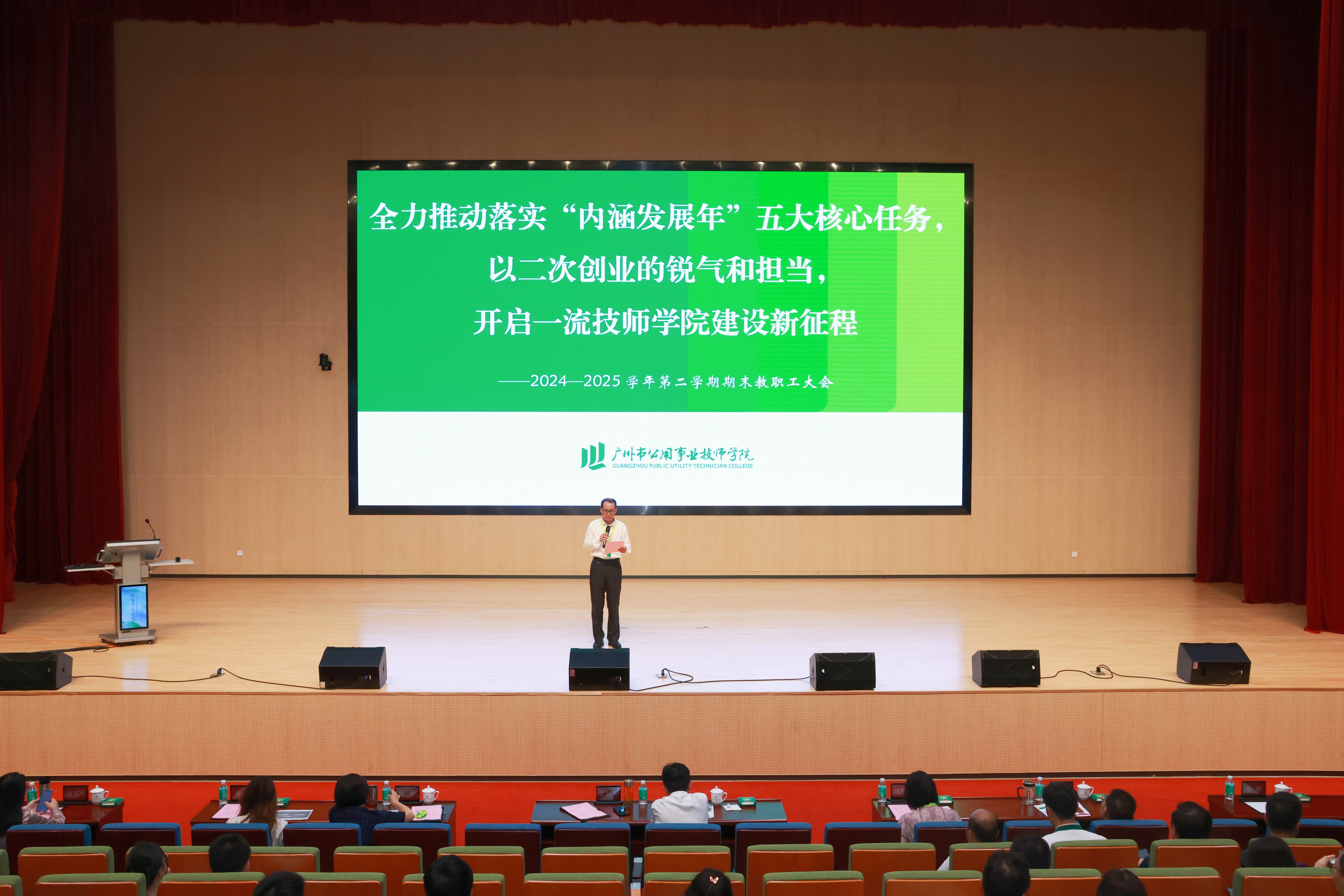 7月12日上午,学院在科教城校区召开2024-2025学年第二学期期末教职工大会,会议围绕“全力推动落实‘内涵发展年’五大核心任务,以二次创业的锐气和担当,开启一流技师学院建设新征程”主题展开,全体教职工参加会议。