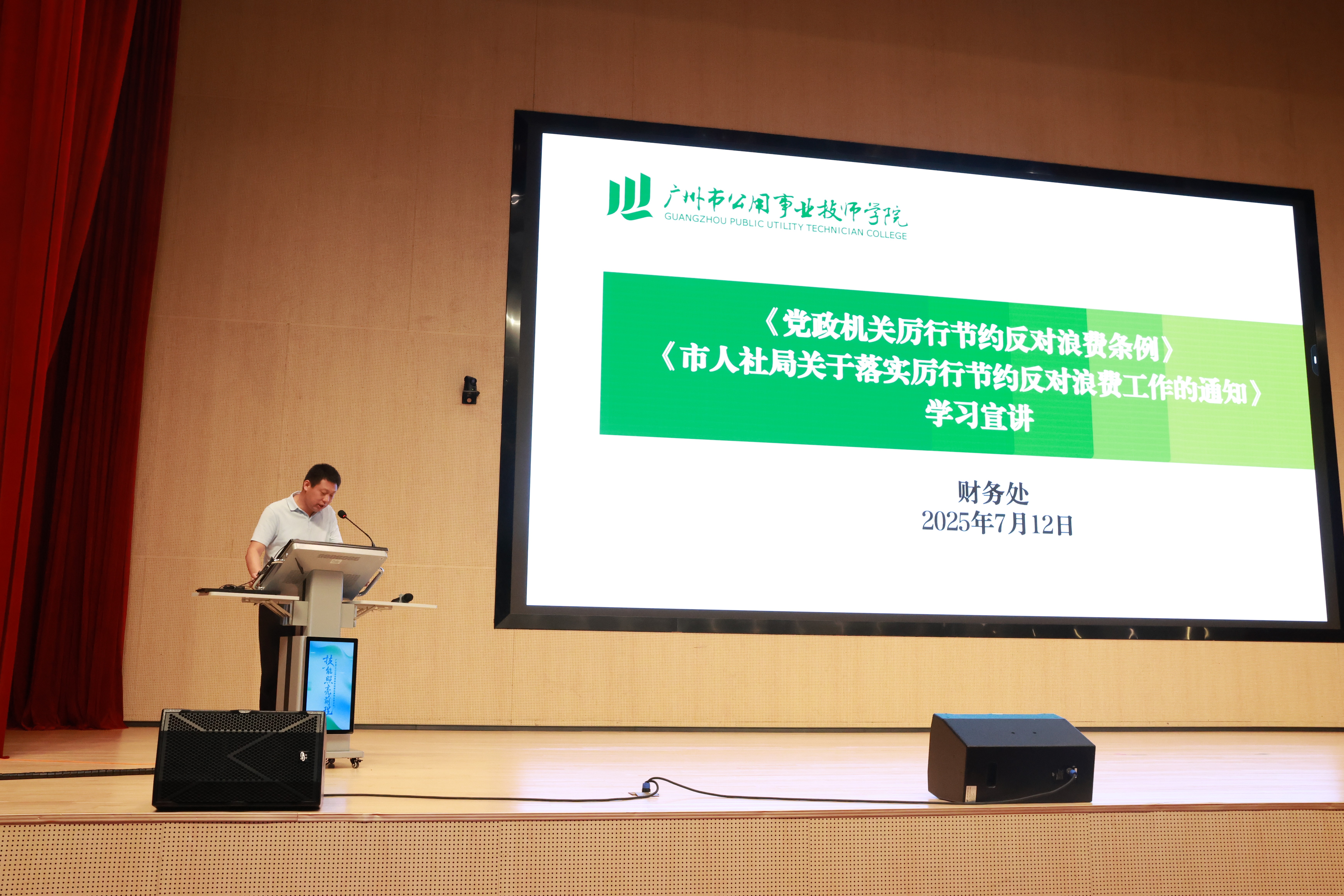 其后,财务处房瑜主任作《党政机关厉行节约反对浪费条例》《市人社局关于落实厉行节约反对浪费工作的通知》学习宣讲。