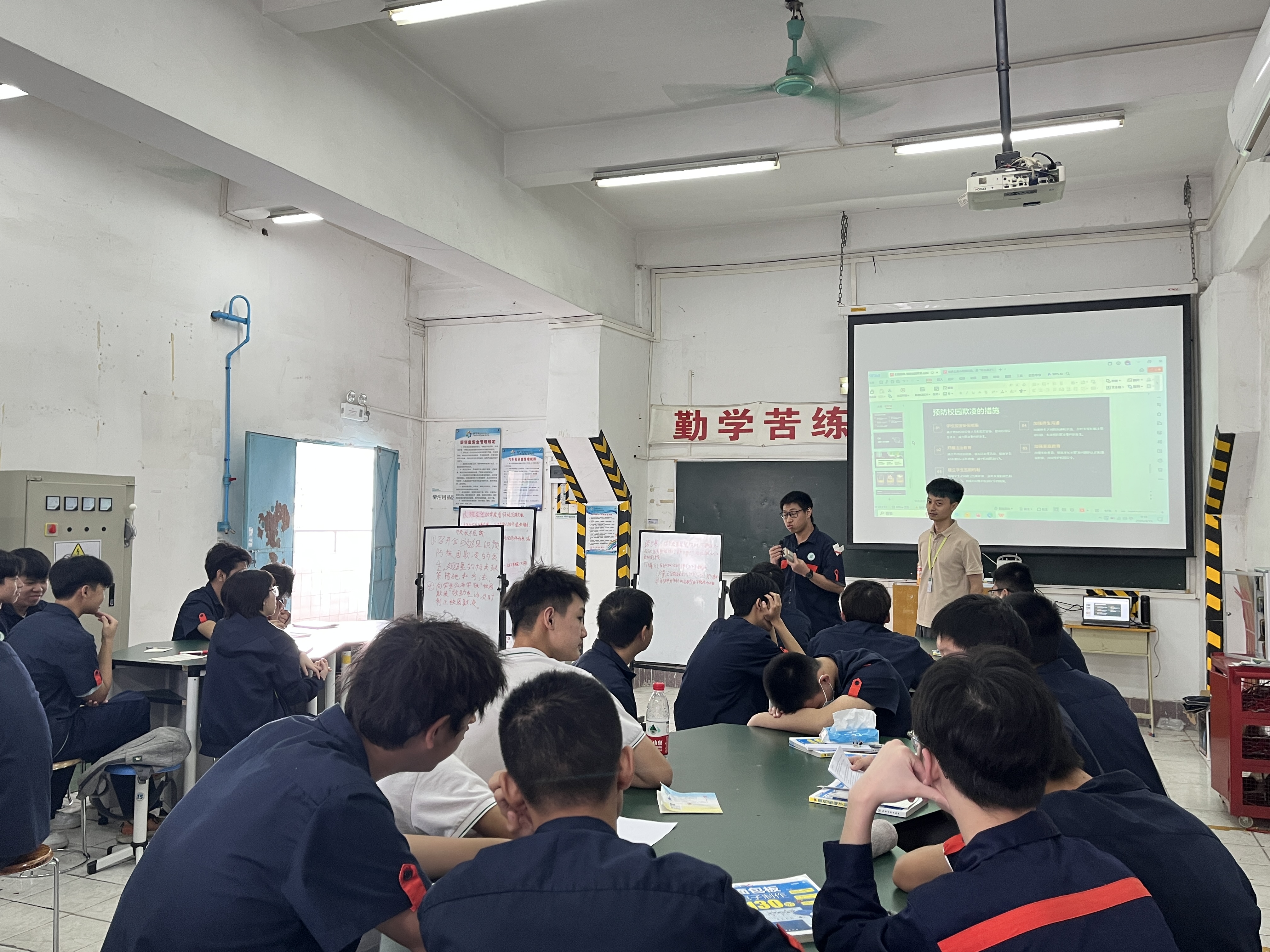 2024年4月15日上午,在导师刘战伟老师的精心指导下,罗凯文老师以《扫黑除恶知多少——预防校园欺凌》为题,在金盘岭A1-211教室为智慧交通产业系23智能汽车2班的学生们带来了一堂生动而深刻的主题班会公开课。此次公开课旨在加深同学们的法治观念,提升他们预防与应对校园欺凌的能力。