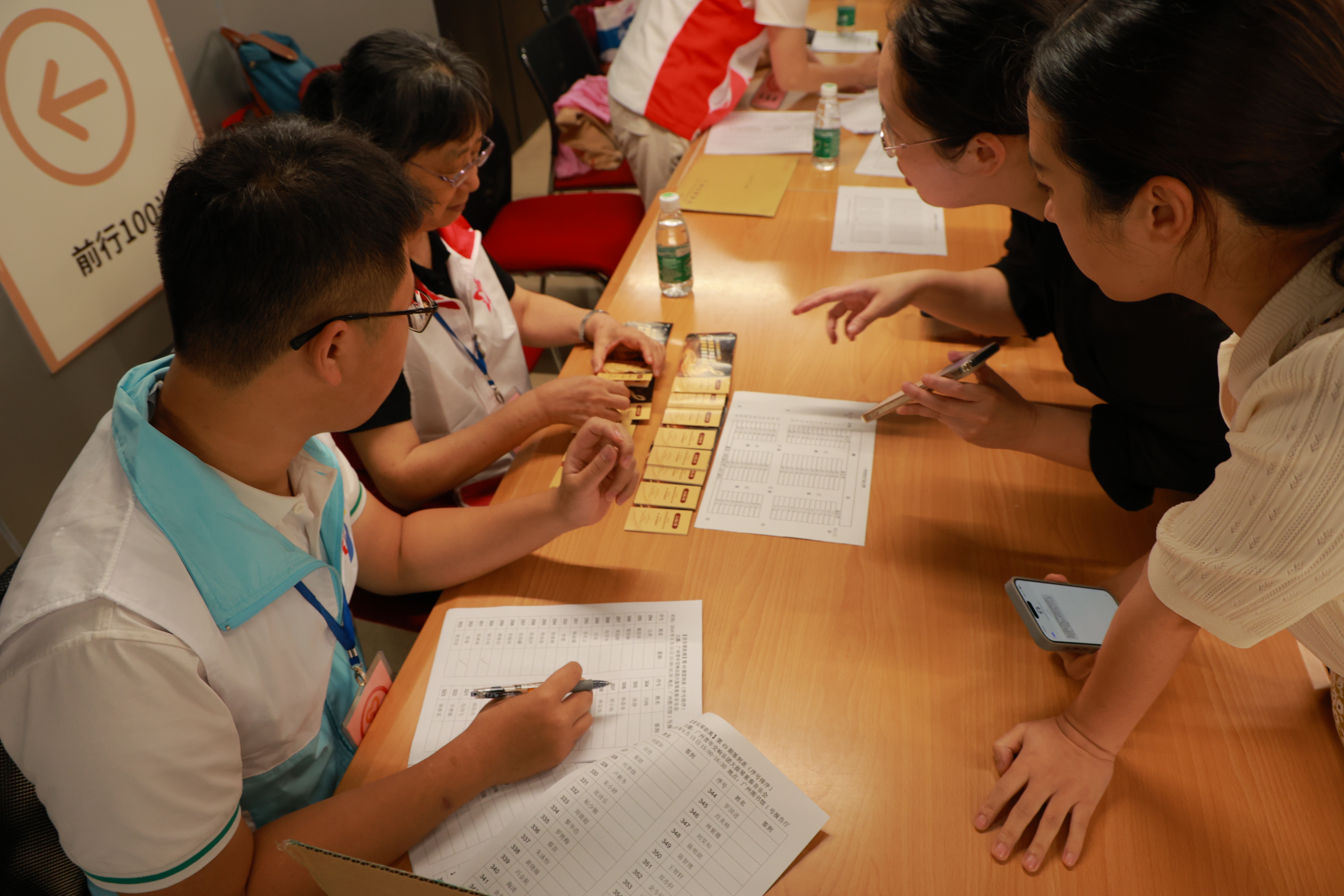 活动伊始,通过网上预约的观众们络绎不绝地抵达签到处。智慧交通系团总支的六名志愿者迅速进入工作状态,他们面带微笑,热情地为观众指引签到、取票流程,并发放入场券。同时,另外三名志愿者则负责维护现场秩序,确保观众有序取票、入场。尽管现场人声鼎沸,但志愿者们始终保持着高度的责任感和敬业精神,确保了每个环节的有序进行。
