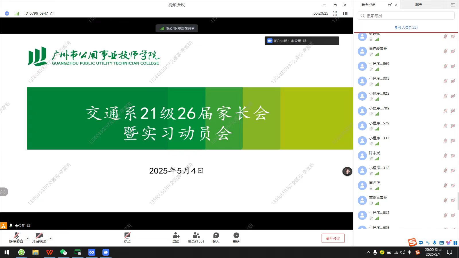 为进一步加强家校沟通,做好学生实习就业指导工作,帮助学生顺利完成从校园到职场的过渡,交通系于 5 月 4 日通过线上会议形式,成功召开 21 级家长会暨实习动员会。