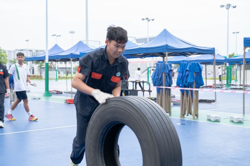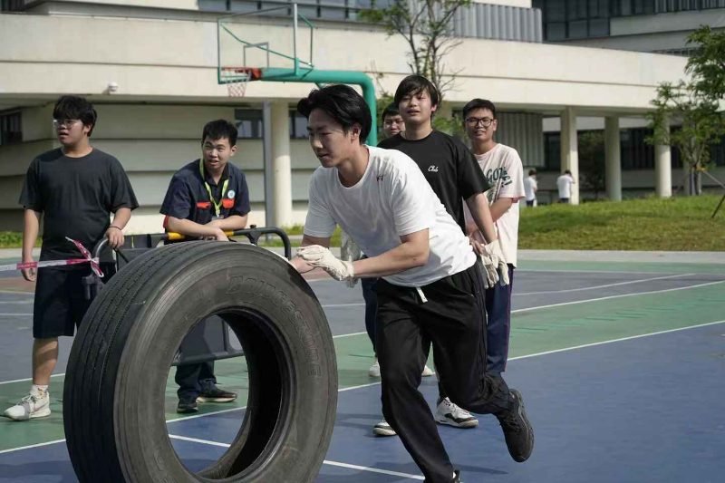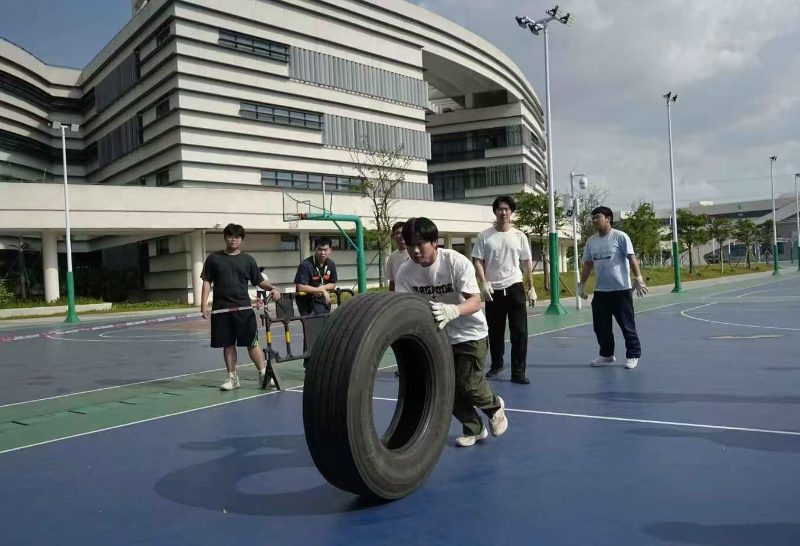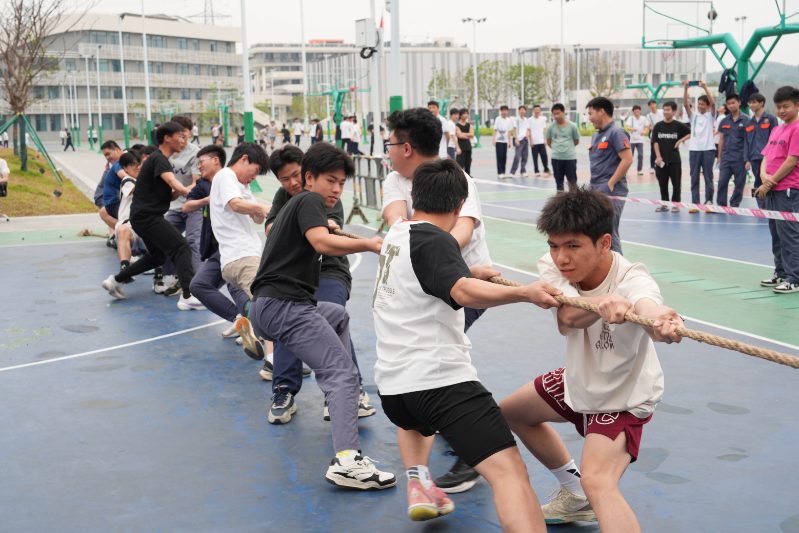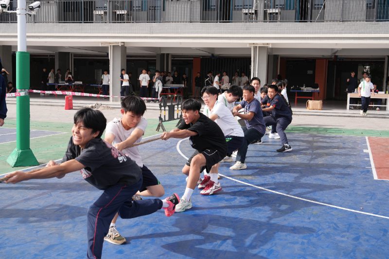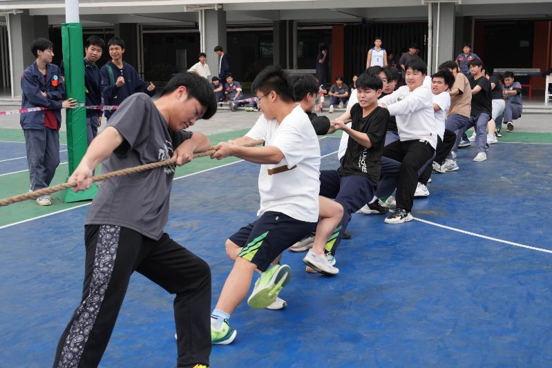 “拔河比赛”“推轮胎趣味比赛” 将体育精神与德育目标有机结合。拔河时队员们脚抵脚、肩并肩的姿态,诠释着 “劲往一处使” 的团队凝聚力;推轮胎比赛中,选手需在快速跑动中保持平衡,既要突破个人体能极限,又要与队友配合调整节奏。这些充满趣味性的竞技活动,让学生在挥洒汗水中懂得 “拼搏不息” 的体育精神,更在胜负之外学会尊重规则、接纳失败,以强健体魄承载坚韧的精神力量。