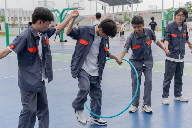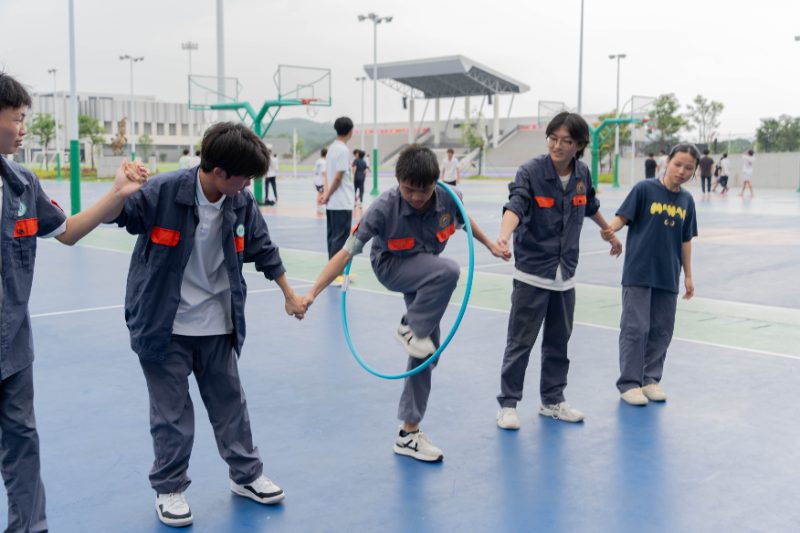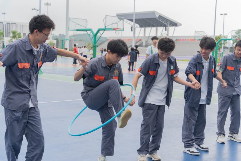 “一圈到底” 心理团辅活动以非语言沟通为核心,学生手拉手通过肢体传递呼啦圈,全程禁止语言交流。这一设计巧妙呼应了交通行业中 “默契配合” 的职业需求 。活动中,学生从初始的手忙脚乱到后期的流畅配合,深刻体会到 “高效沟通”“角色互补” 在团队中的关键作用,将团辅体验转化为对职业协作场景的预演,为未来职场发展筑牢 “共同体” 意识根基。