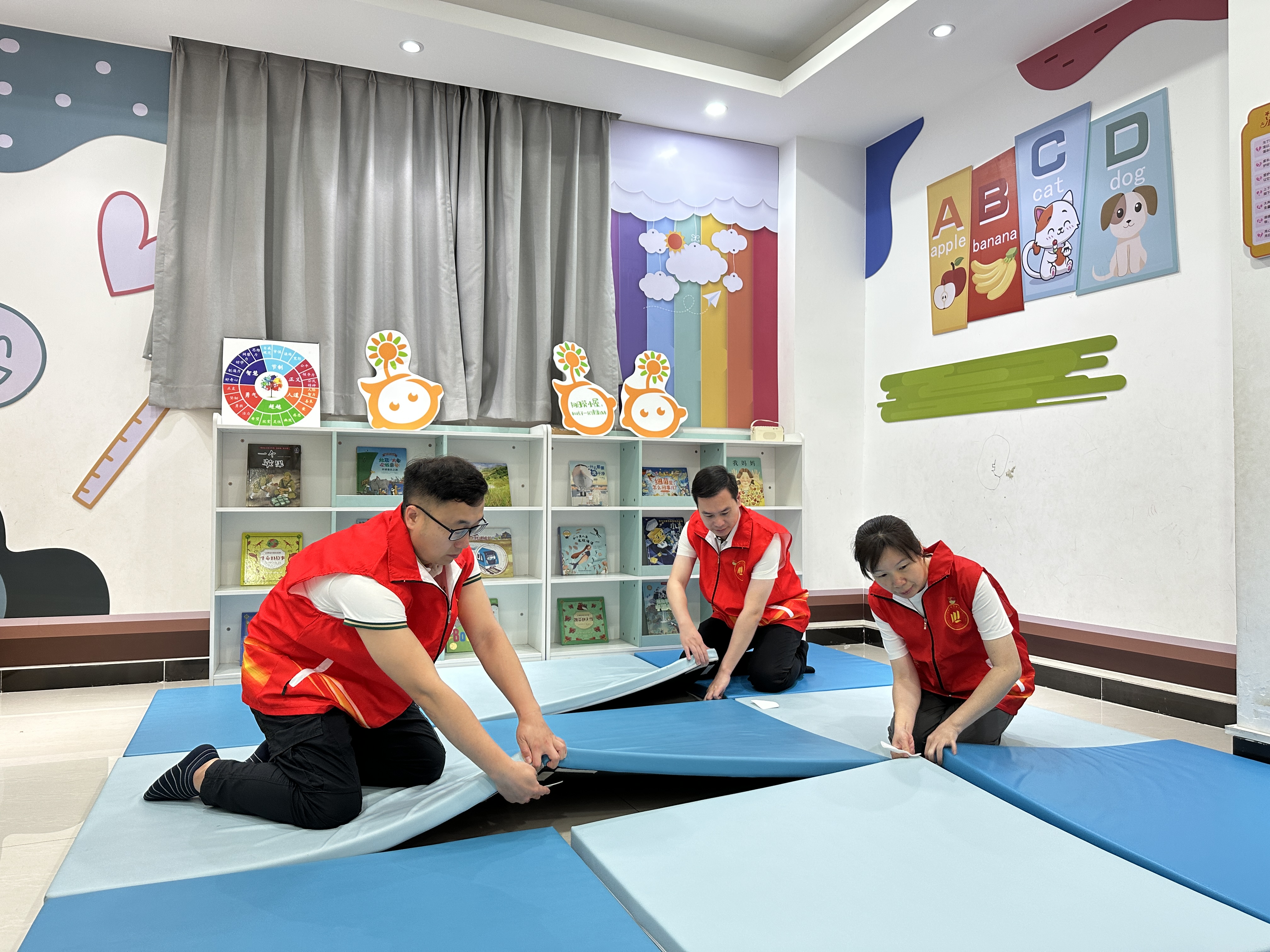 活动中,亲子家庭被分为多个小组,分别参与了托育环境美化、亲子互动游戏、亲子阅读等多个环节。在托育环境美化环节,家长们带着孩子一起动手,为亲子小屋的内外环境进行了全面的清洁和装饰,用实际行动为孩子们创造了一个更加舒适、安全的学习生活环境。在亲子互动游戏环节,孩子们在家长的陪伴下,通过游戏的方式增进了彼此之间的情感交流,同时也锻炼了身体和协调能力。孩子们在家长的陪伴下,与托育机构的小朋友们一起玩耍、学习,共同度过了愉快的时光。家长们也纷纷表示,对“向日葵亲子小屋”提供的志愿服务表示满意,对提升他们的育儿技能和增进亲子关系有显著帮助。