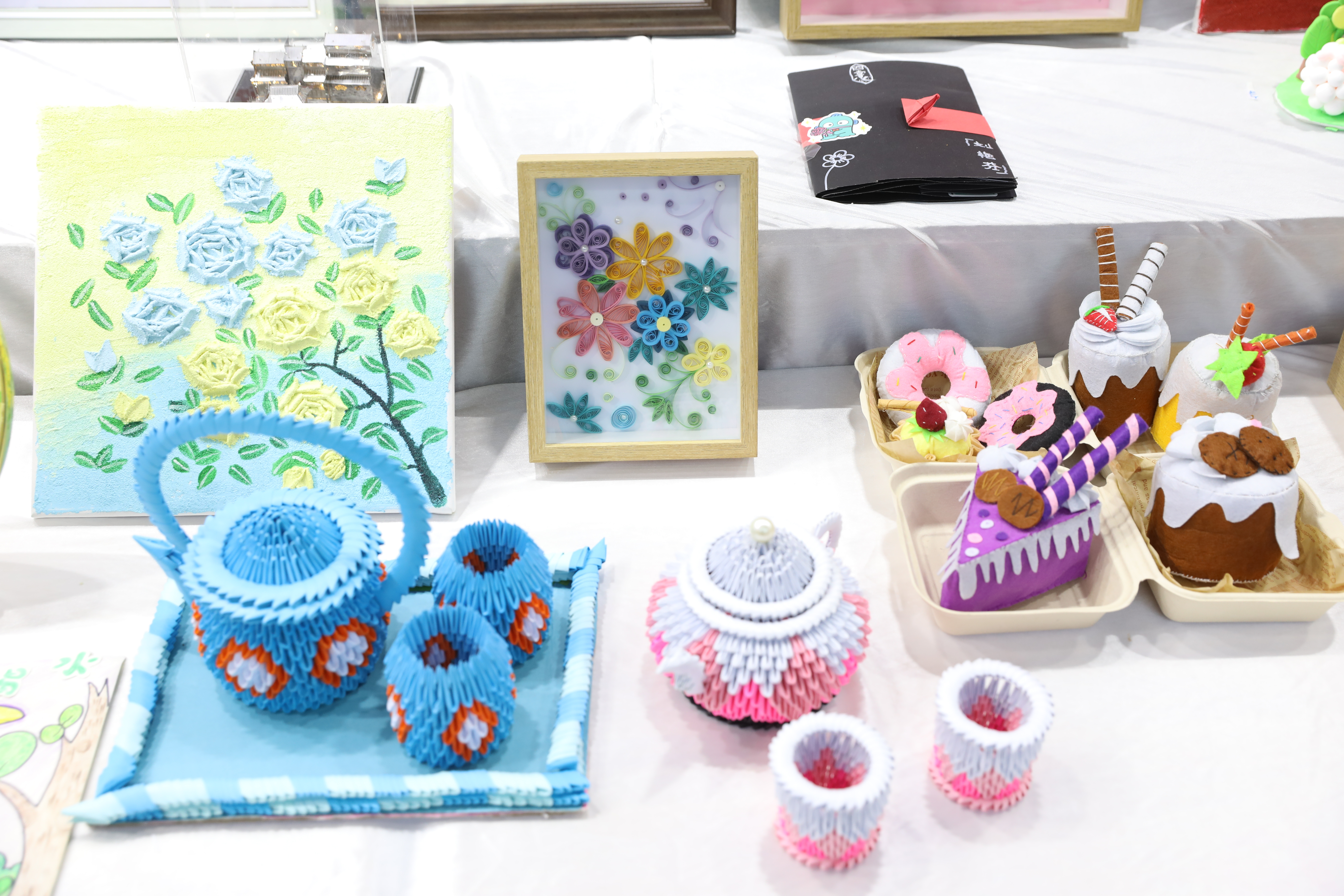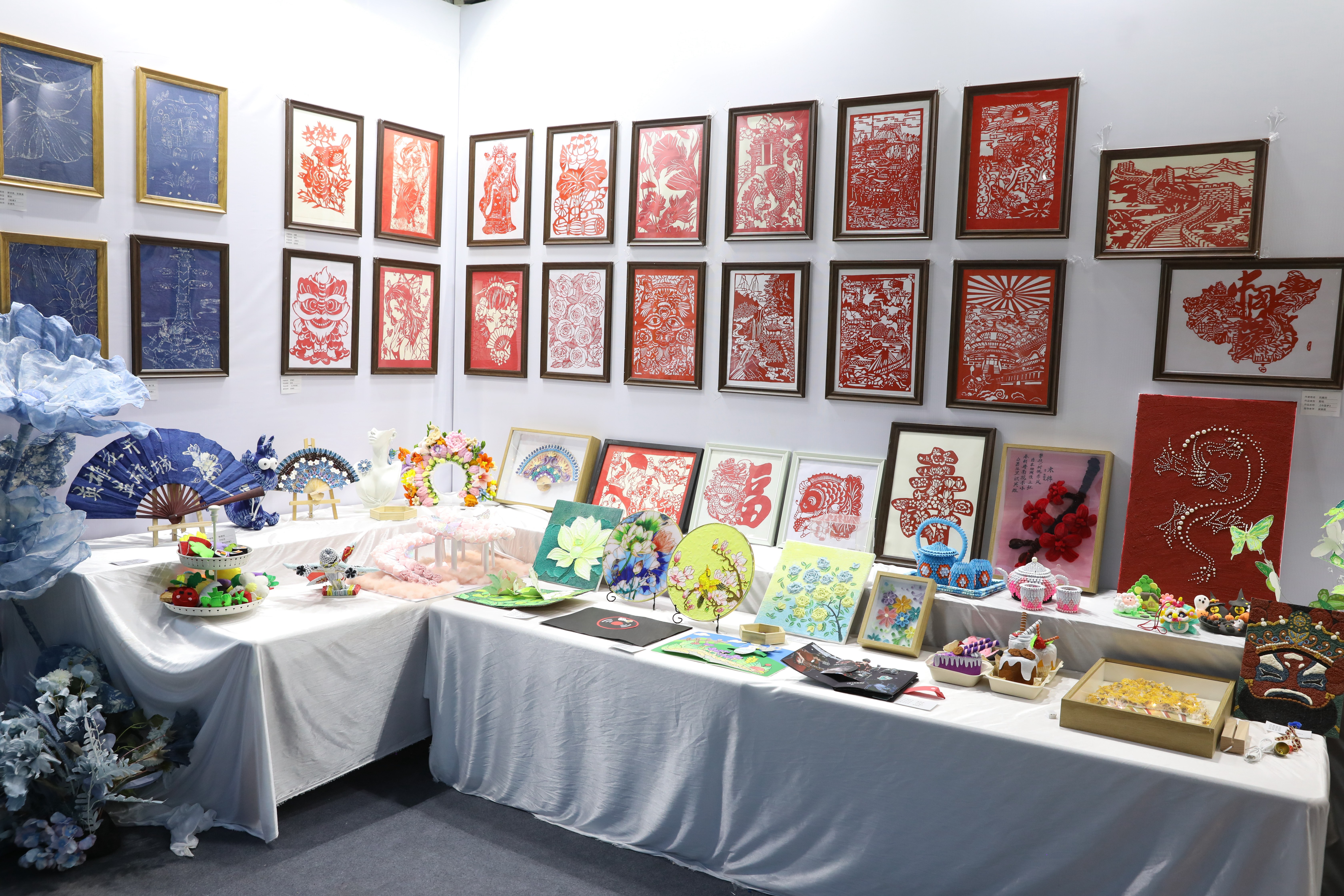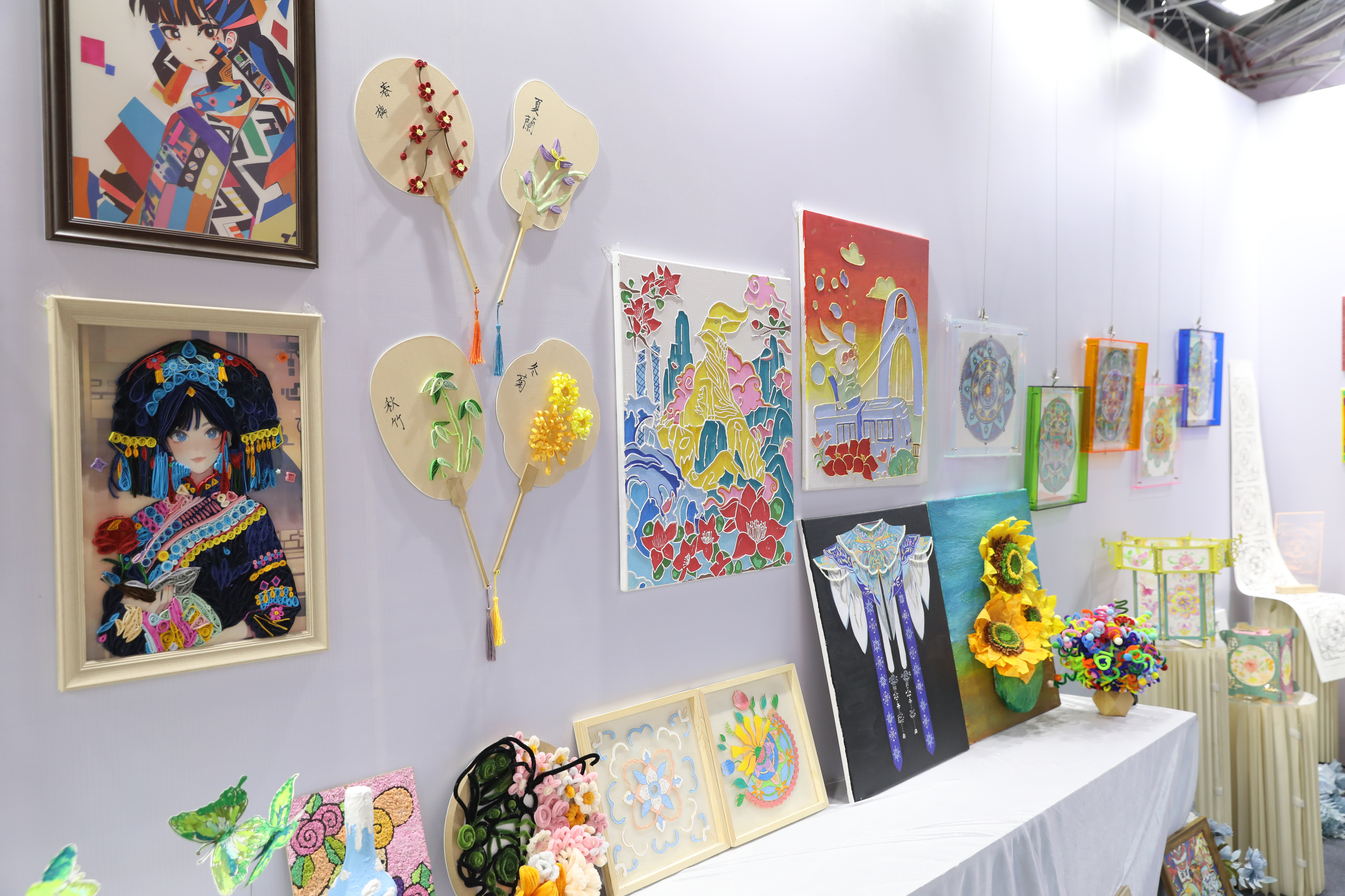 作品区紧扣英雄之城的主题,作品涵盖了非遗漆艺、掐丝珐琅、沥粉画、剪纸、蜡染布艺等多种类型,展现了创意与匠心、巧妙与活用,融入了传统文化与互动元素。