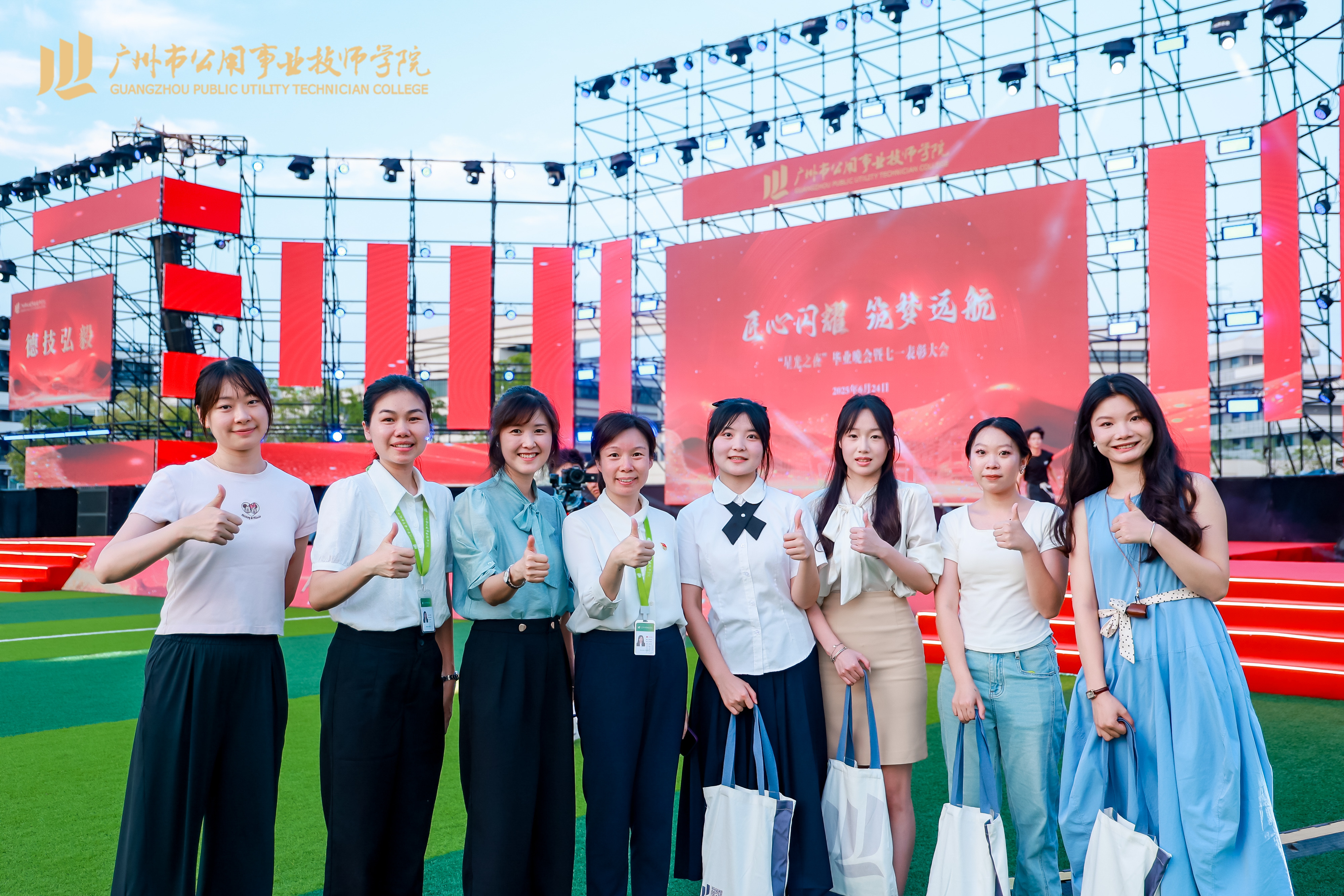 汤幸燕(右三)参加学院星光之夜晚会,被授予优秀实习生称号