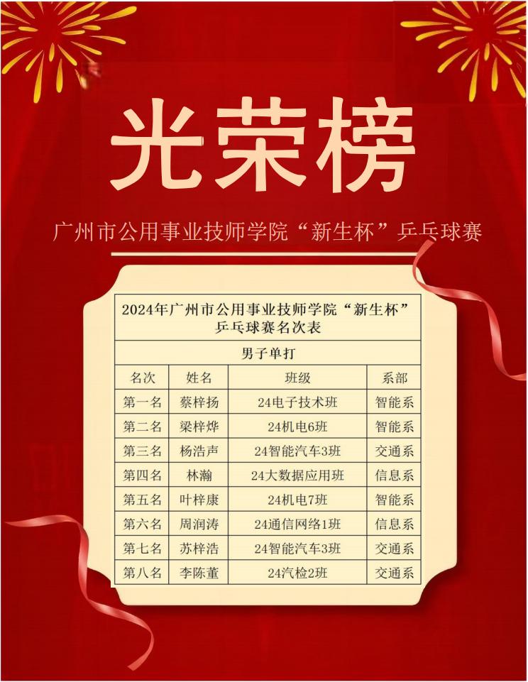 金秋十月,丹桂飘香。广州市公用事业技师学院内洋溢着一股青春的活力与激情。10月15-16日,由学院人文素养系主办,学生工作处(院团委)、乒乓球俱乐部协办的2024年“新生杯”乒乓球赛,在科教城校区弘志馆圆满落幕。