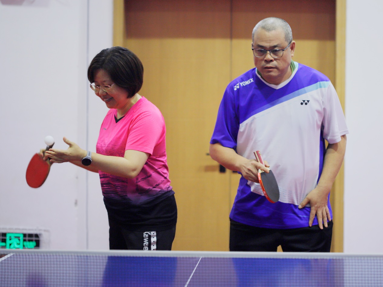 本次乒乓球比赛设有男双、女双及混双三个竞技项目,人文素养分会代表队表现沉稳,战术章法清晰,一路过关斩将,取得了骄人的战绩。拉拉队们同样表现出色,他们的呐喊助威声此起彼伏,为队员们提供了强大的精神支持,成为了全场的焦点。在比赛的关键时刻,林海华老师凭借精湛的技艺和稳定的心态,为系里完成了完美的收官之战;刘文辉老师和王斌老师则继续发挥默契配合,共同应对各种挑战;邱露露老师凭借其扎实的基本功,赢得了观众的阵阵掌声;蔡健老师和陈苹书记则组成了最佳拍档,他们不仅技艺高超,还善于运用心理战术,让比赛过程充满欢声笑语。值得一提的是,高玲老师的呐喊声最为响亮,她的助威声为队员们注入了无穷的动力。整个代表队的精湛技艺和团队合作精神,赢得了在场观众的阵阵喝彩和赞叹,为人文素养系分会赢得了极高的荣誉。