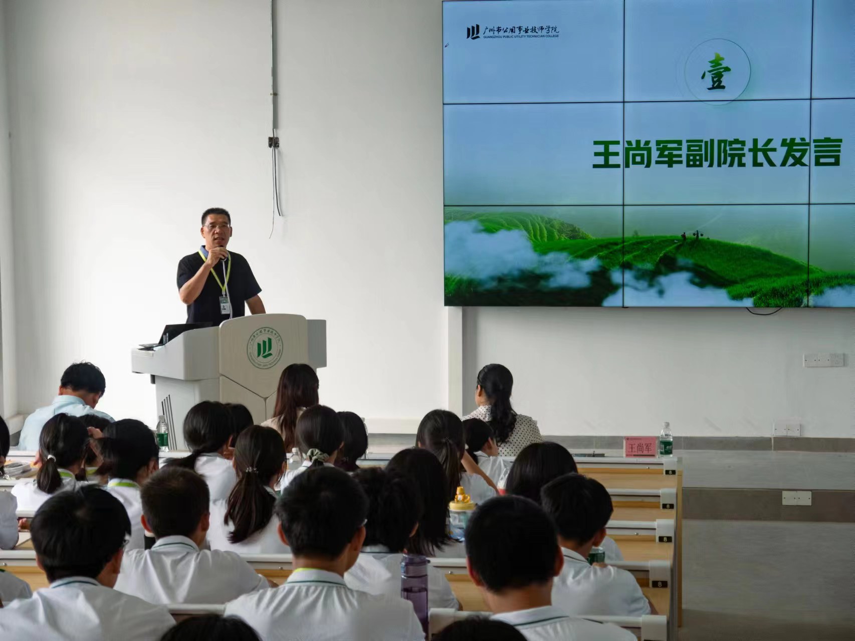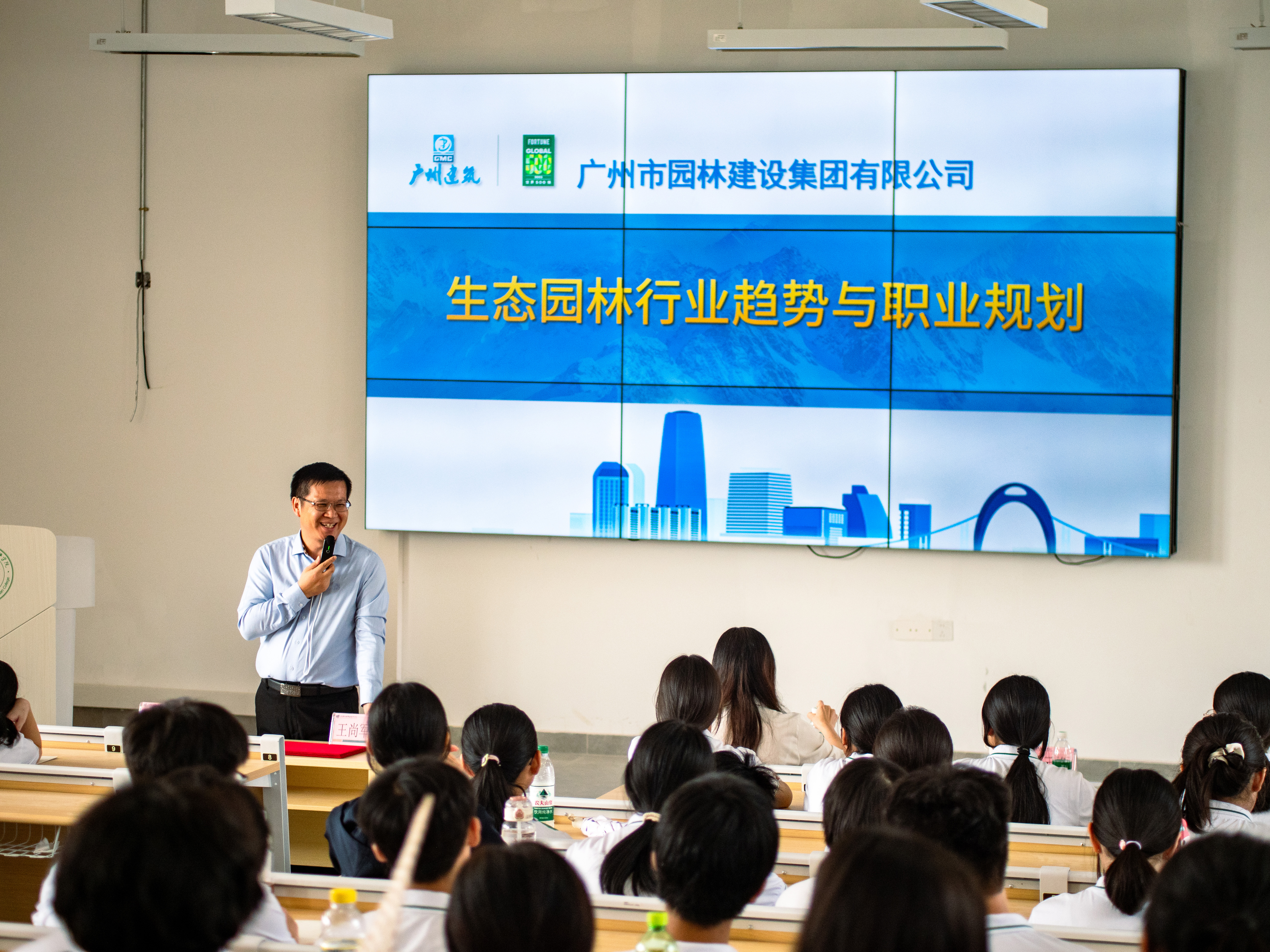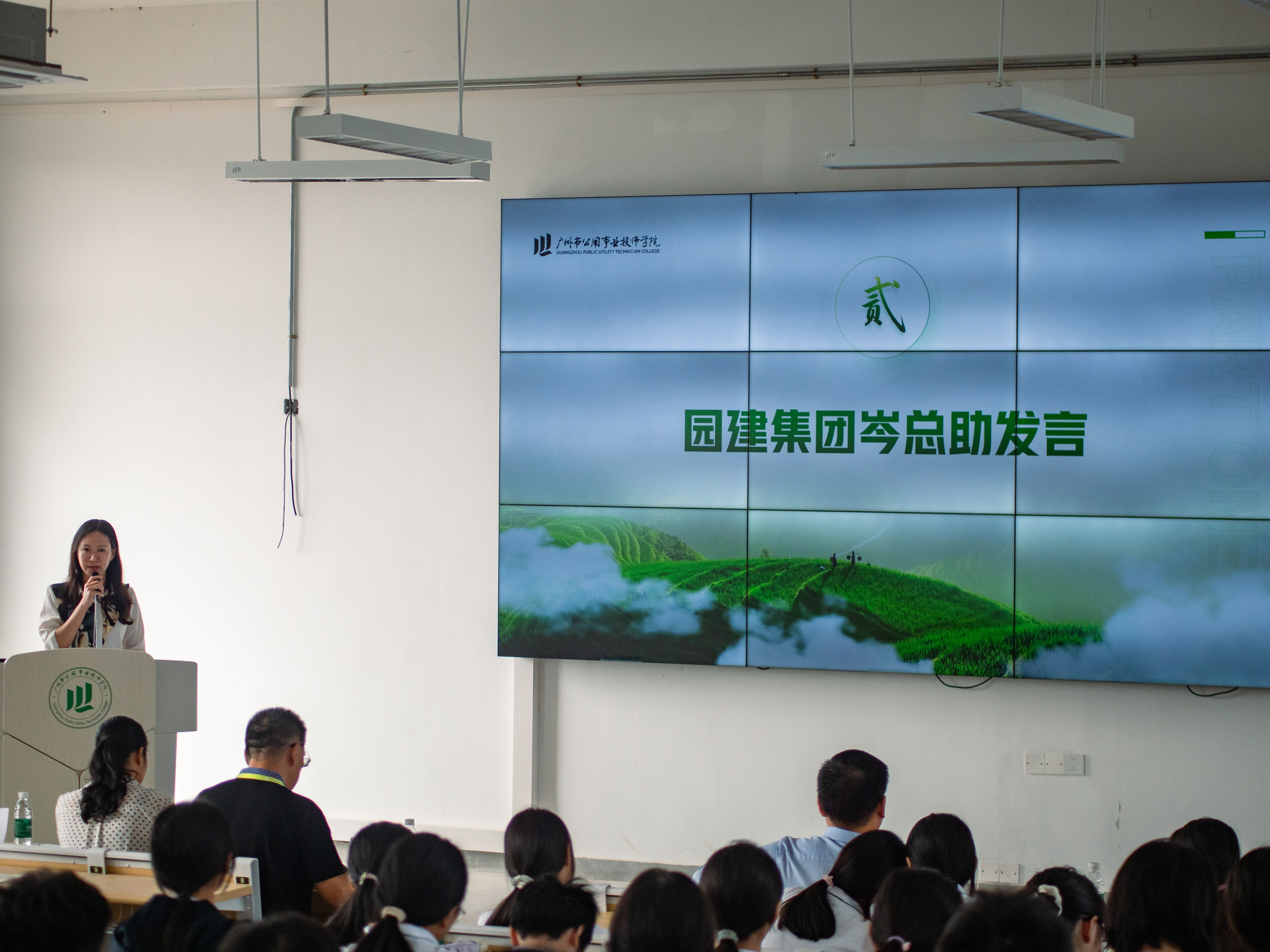 仪式上邀请了广州市园林建设集团有限公司总经理助理岑润洁、广州市园林建设集团有限公司顾问谭云峰,为园林组新生班进行开班致辞和行业趋势与职业规划的授课。