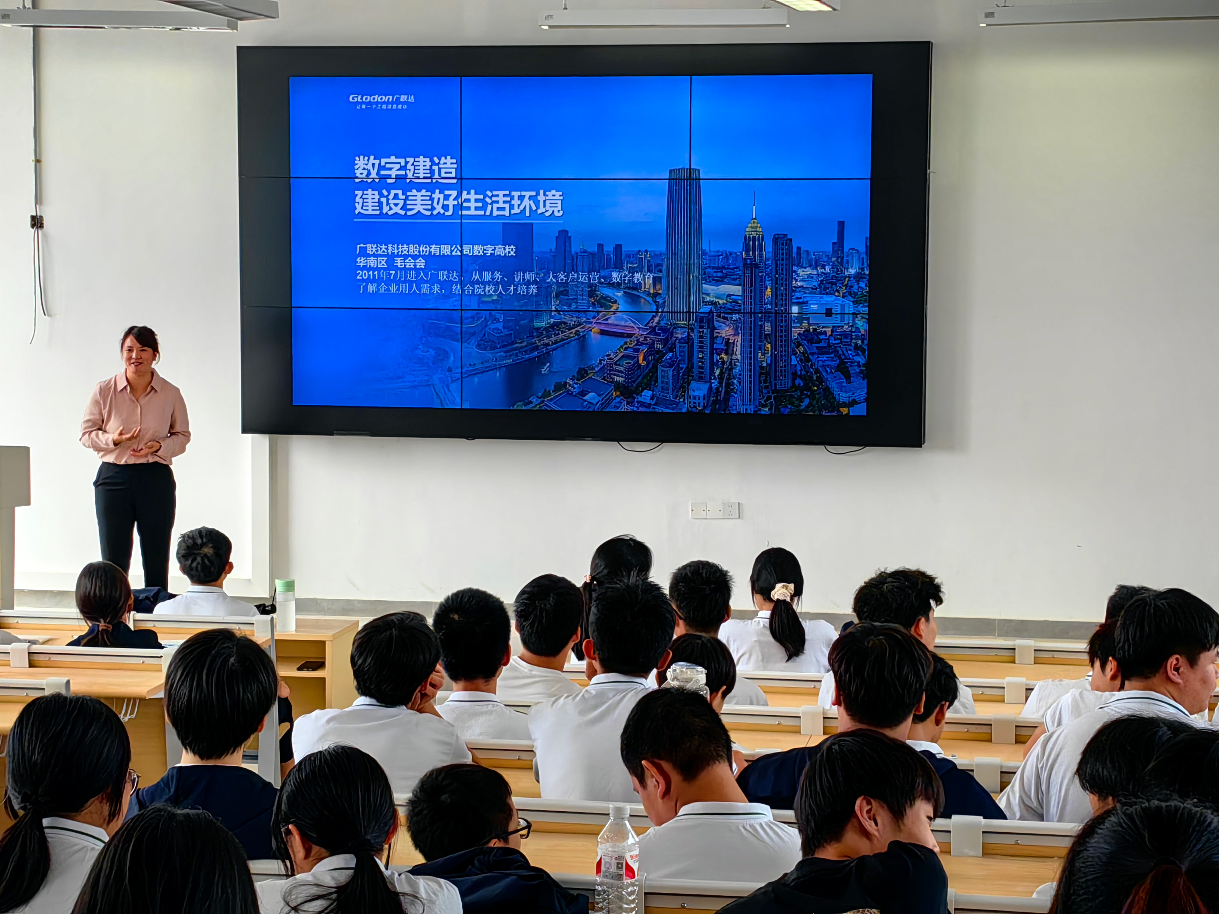 9月25日上午,建筑工程组邀请了广联达科技股份有限公司的华南区域总监毛会会、广联达华南区区域经理朱军练为建筑工程组所有专业的新生进行了广联达企业介绍及行业发展现状与趋势的授课。