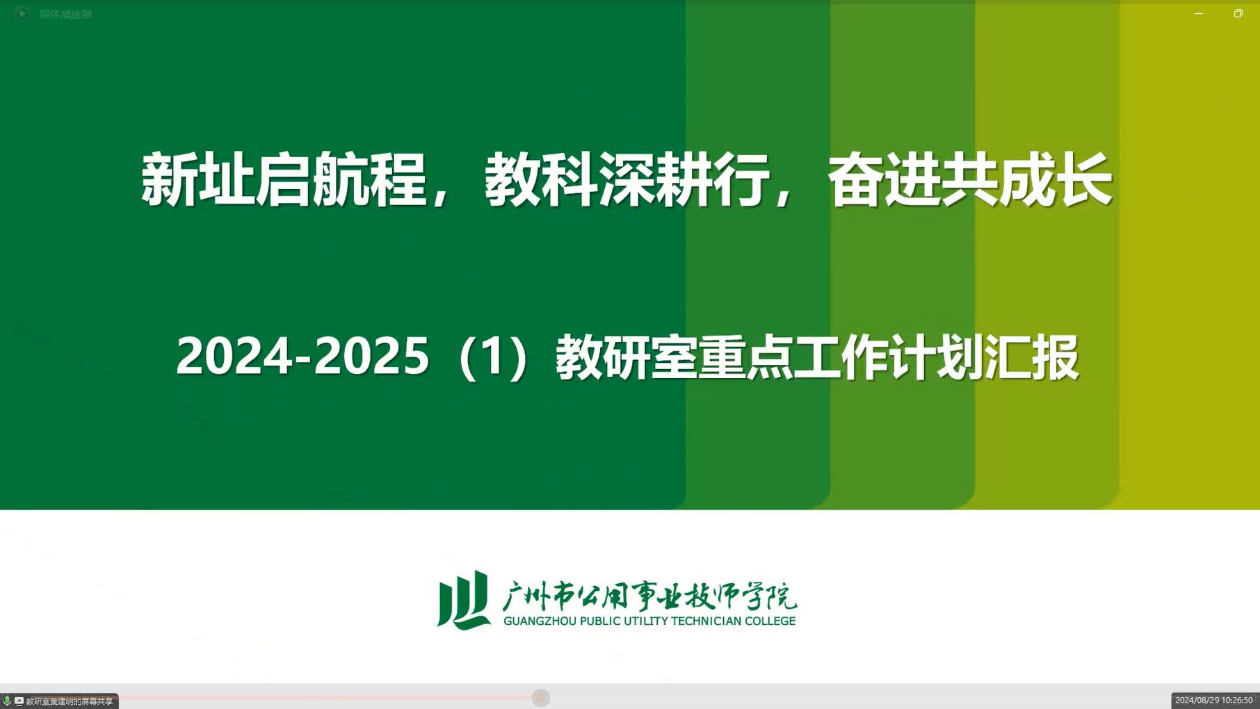 教研室主任黄建明汇报新学期教科研重点工作。学院将围绕高水平技师学院建设工作,推进工学一体化技能人才培养模式落实,完善人才培养方案与课程体系,持续优化专业布局,以师资培训、教学能力竞赛、精品课程建设、课题研究等工作为抓手,助力教师专业化成长,深化ISO制度文化建设,夯实管理制度体系。