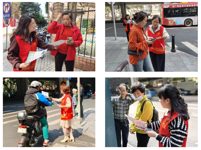 学院师生还将志愿服务送到社区群众的家门口。今年3月,恰逢第114个“三八”国际劳动妇女节,学院开展巾帼志愿服务,行政第一党支部及行政第二党支部的巾帼党员志愿者走进社区开展“守护平安广州 全民防范我践行”交通安全宣传志愿服务,提升为民服务意识。