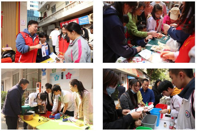 在资助政策宣传摊位,社区群众通过志愿者的讲解进一步了解技工院校;在压花体验活动摊位,小朋友和家长在志愿者的指导下专注地投入到压花艺术创作中,对压花作品感到满心欢喜;在智能义修摊位,学院志愿者为居民的家用电器进行检测维修,社区群众拿到修好的家用电器,对学院的义修志愿者赞不绝口;在垃圾分类摊位,社区群众通过参加趣味游戏对垃圾分类有了更清楚的认识。