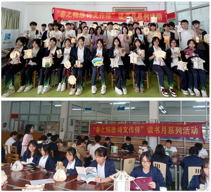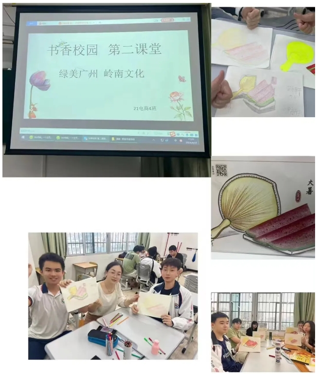 行政第二党支部党员教师以广州读书月、世界读书日为契机,带领同学们诵读毛泽东诗词《沁园春•长沙》《卜算子•咏梅》等经典名篇名作,同时进行诗画宫灯手工制作。在同学们的精心设计和巧手制作下,一幅幅中华诗词瑰宝和春之美好景色跃然于宫灯之上。