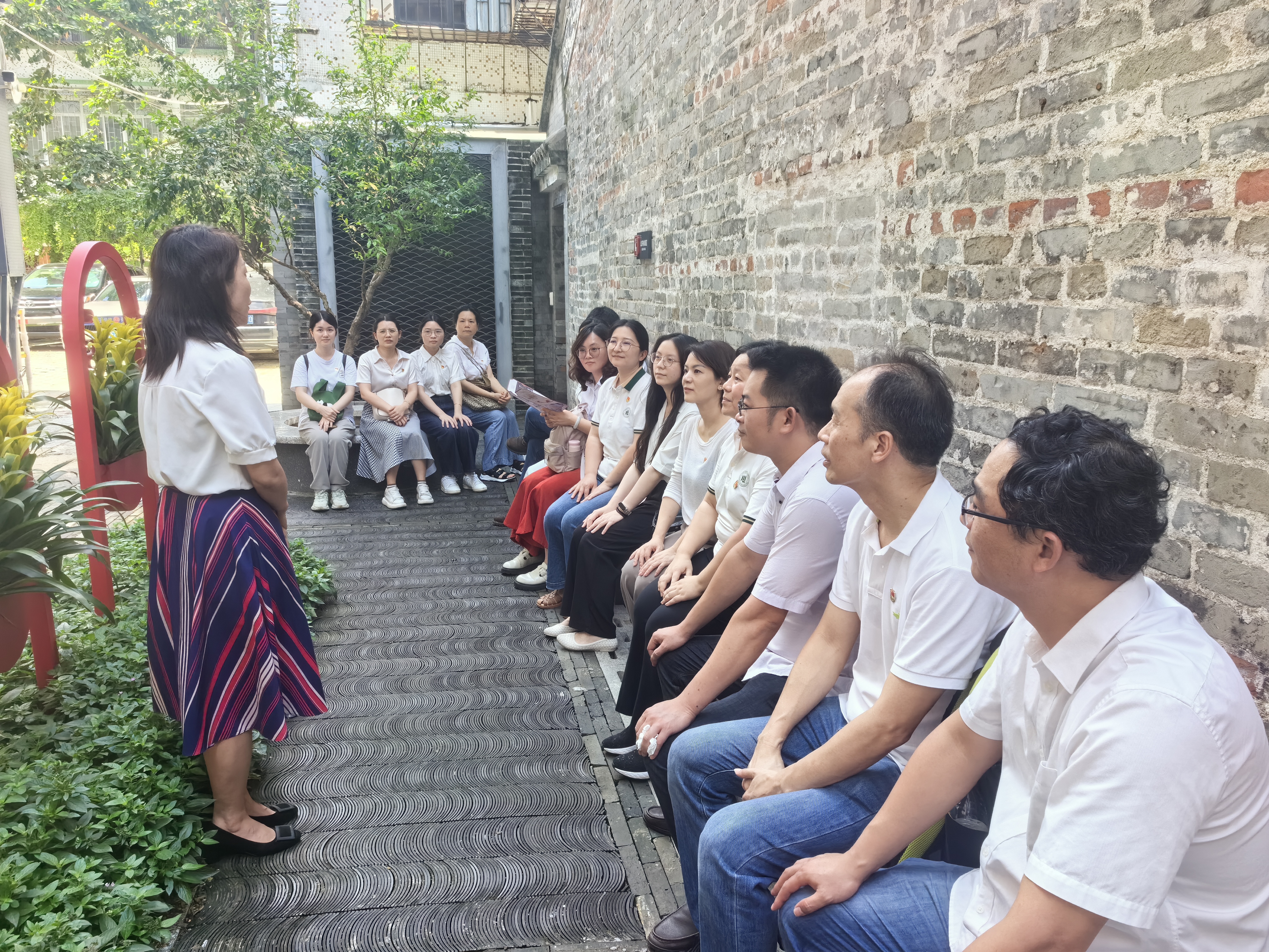 在永庆坊荔湾城市记忆馆,学院退休第一党支部和退休第二党支部的退休党员对荔湾的历史风韵、红色印记、变迁发展有了全面的认识。党支部书记在现场讲授党课,带头领学《条例》,强化退休党员干部的纪律意识,确保退休老党员的党纪教育“不缺位”、理论学习“不掉队”。