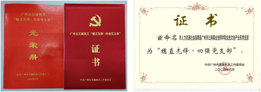 2024年6月,信息文创产业系党支部被命名为“穗直先锋·四强党支部”