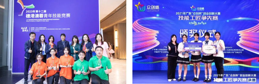 信息文创产业系党支部严抓作风建设,营造正气,党员队伍敬业进取,成绩斐然。近年来,信息文创产业系党支部党员教师带领学生在多项赛事中屡获佳绩,包括中华人民共和国第二届职业技能大赛全媒体运营赛项金牌、广东省第一届信创大赛一等奖、第十二届穗港澳蓉青年技能竞赛商品展示项目金牌、网络安全项目银牌等。党支部以竞赛促技能提升,师生技能并进,师资团队实力雄厚,包含全国技术能手3人,省市技术能手、优秀教师、市级专业带头人、课程负责人、教学能手等合计28人次。