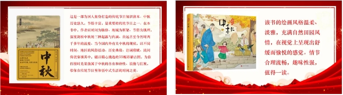 以‘读’寄情,月圆寄相思。在这个特别的日子里,学院各党支部纷纷开启“读”物寄思。行政第二党支部通过推荐《印象中秋:文学大家谈中国传统节日》《四时吉祥·中秋》《中秋节:花篮的月饼》等好书,传承中华优秀传统文化,传递节日的温暖与祝福。行政第五党支部向支部成员推荐书籍《我们的节日·中秋》和《中秋》,较好地帮助大家更深刻地理解中秋佳节的独特韵味,进一步增强党员的文化自信。