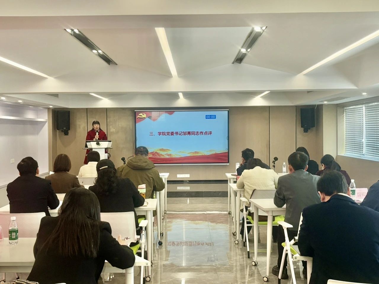 学院党委书记邹菁对过去一年各党支部巩固拓展主题教育成果,深入开展党纪学习教育,推进党纪学习教育常态化长效化及党建工作给予充分肯定,对党支部书记抓基层党建工作进行了针对性指导和综合点评,并就学院加强基层党建工作提出了具体要求。