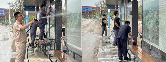 此外,学院智慧交通产业系党支部推动劳动教育与专业实践深度融合,组织师生开展公交站台清洁维护专项行动。每周五上午,党支部教师带领学生运用所学知识美化公交站台。他们细心擦拭站牌、座椅等市民高频接触区域,认真清理地面垃圾。师生们以“小抹布”守护“大民生”,用躬身劳动诠释“劳动创造美”的真谛,在擦亮城市微空间的过程中,生动展现了新时代青年的责任担当。