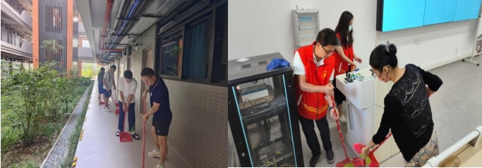 健康护航。学院各党支部各部门深入开展爱国卫生运动,落实“每周五深度清洁”常态化机制。党员们带头对办公室、食堂周边、绿化带等重点区域进行彻底清扫和消杀,清理卫生死角,营造整洁健康的校园环境,筑牢卫生防线。