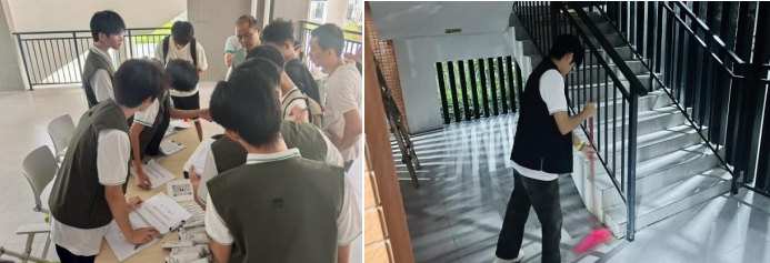 学生志愿者开展迎新志愿服务及清扫公共区域