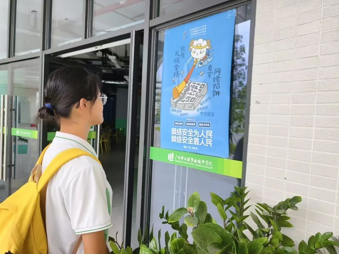 图文传理念,防线筑心间。学院在师生高频活动区域精心张贴了以网络安全为主题的系列宣传海报。海报设计生动、图文并茂,以可视化形式将网络安全知识融入日常场景,有效提升了师生的防范意识与辨识能力,使文明上网、安全用网的观念深入人心。