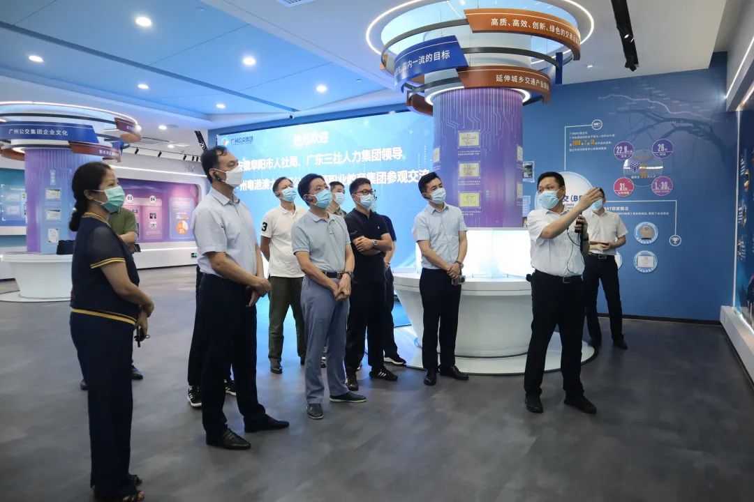 广州市公用事业技师学院院长鲁储生(左四)陪同安徽省阜阳市人社局一行开展职教集团建设交流学习