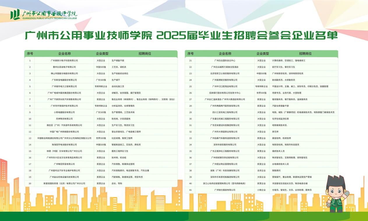 学院广邀名企大厂开展专场招聘。华为机器、小鹏汽车、比亚迪、西门子、海尔、燃气集团、广州自来水公司等世界五百强企业、中国500强企业及专精特新企业以及得物APP、高新兴电子科技等新兴知名企业入校招聘。