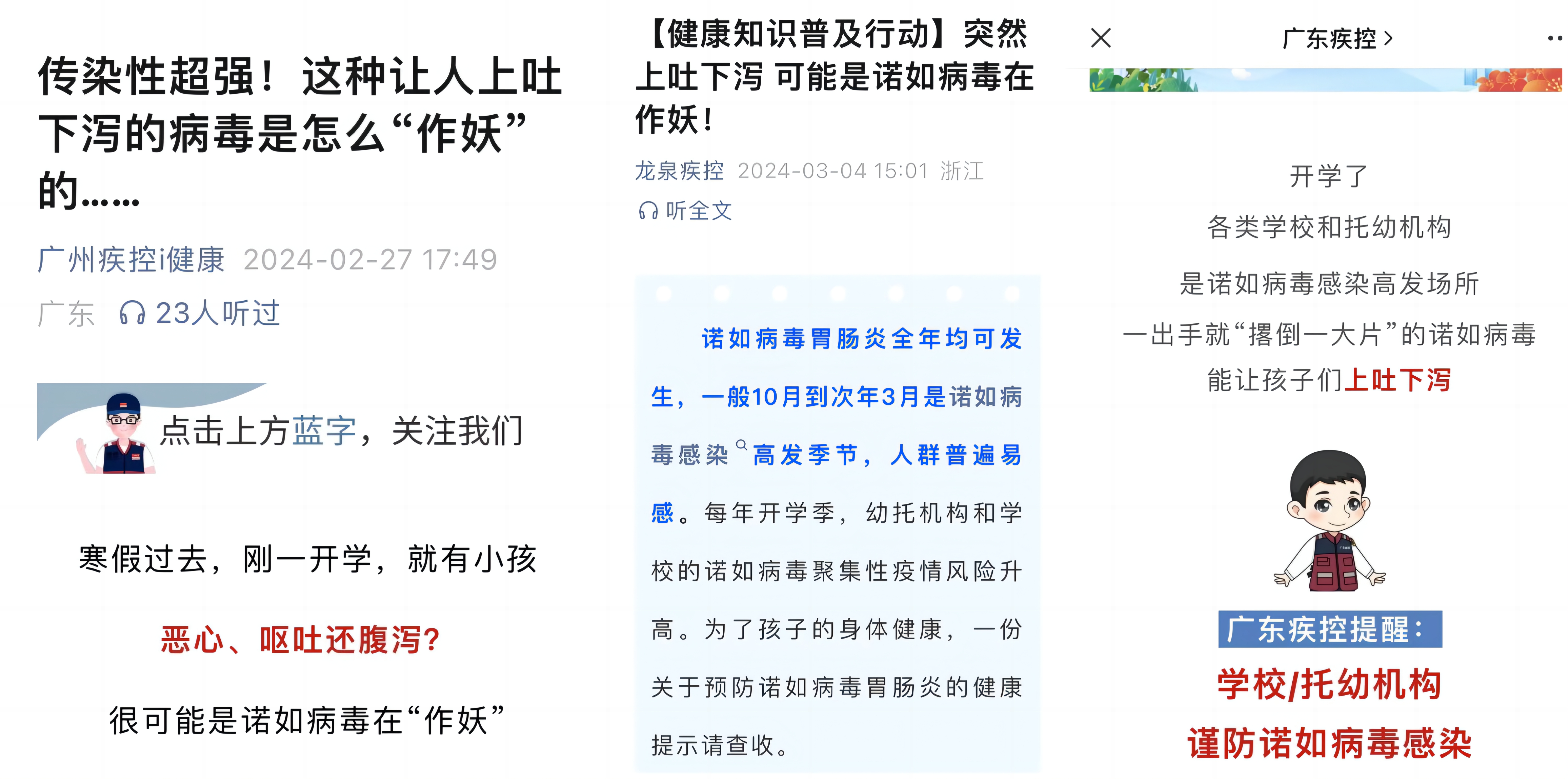 ●广东疾控提醒:诺如病毒感染后起病急·属于自限性疾病,多数患者发病后无需治疗,应及时补充呕吐和腹泻时消耗的水分·休息2-3天即可康复。少数患者因呕吐或腹泻症状严重需要及时就诊治疗。
