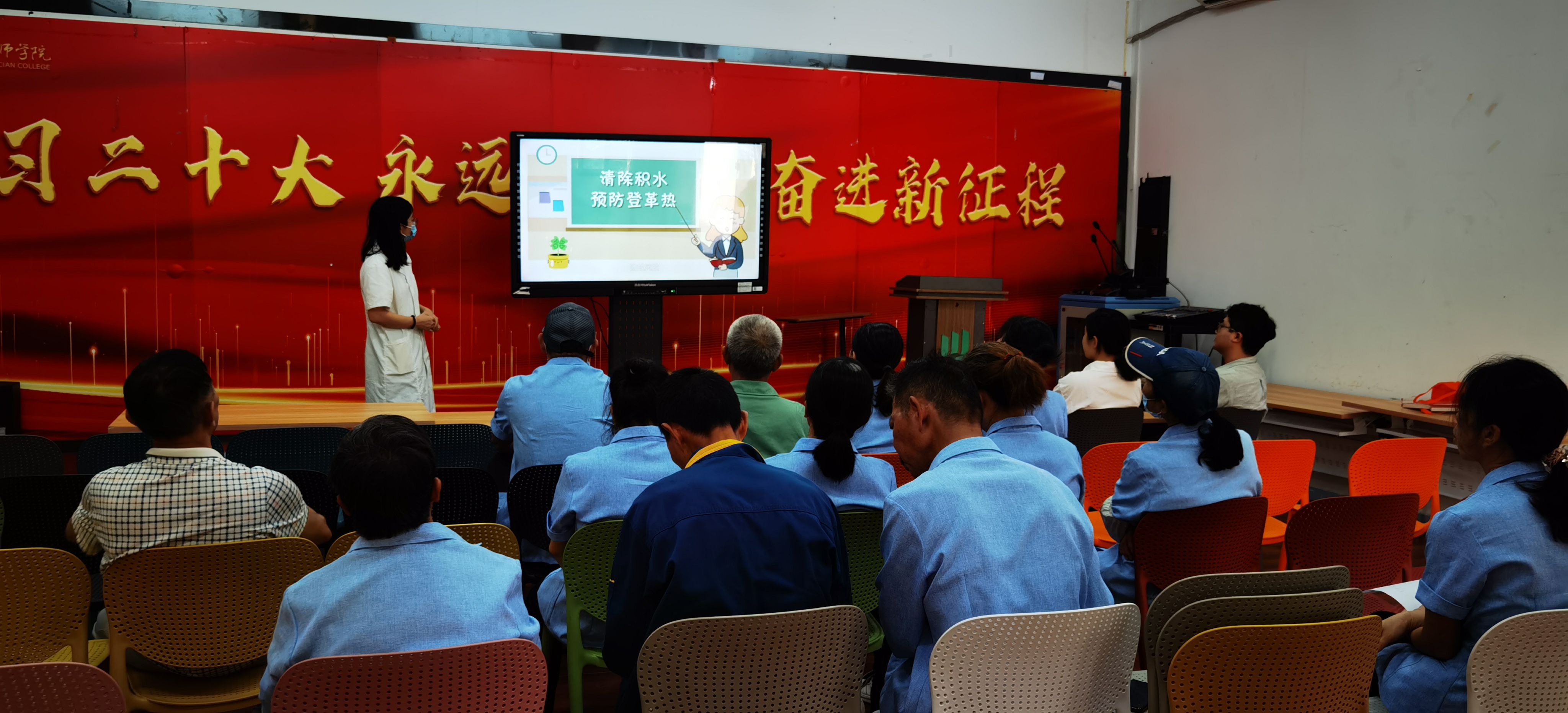 近日,我院顺利完成针对校园物业人员的防蚊灭蚊及除四害知识培训。本次培训由医务室组织,分别在三校区举行,受训对象为全体物业人员,旨在提高学院物业团队对病媒生物的防治水平,有效预防和控制校园登革热等媒介传染病的发生,保障师生员工的健康与安全。