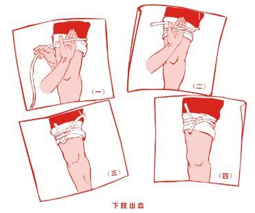 适用于四肢大动脉出血或伤口大、出血多,而采用以上止血方法仍不能止血时。操作前应先将伤肢抬高,止血带应尽量靠近出血部位,并注意每小时松开一次,避免缺血坏死。