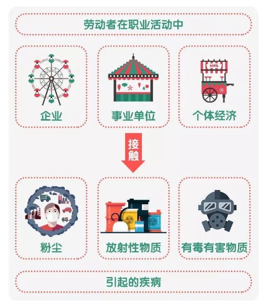 根据《中华人民共和国职业病防治法》的规定,职业病是指企业、事业单位和个体经济组织等用人单位的劳动者在职业活动中,因接触粉尘、放射性物质和其他有毒、有害物质等因素而引起的疾病。