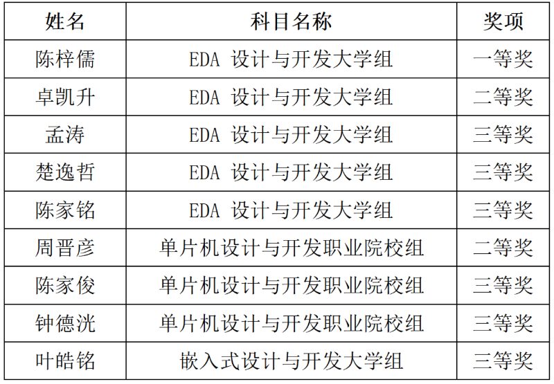 近日,第十五届蓝桥杯全国软件和信息技术专业人才大赛个人赛全国总决赛成绩公布,学院智能系陈梓儒同学与全国高校选手同台竞技,展开激烈比拼,最终斩获EDA设计与开发大学组二等奖。公用学子不断精进,以过硬的技术技能,连续第三年在与全国各地的大学生PK中荣获佳绩。
