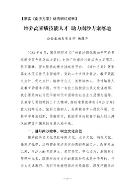培养高素质技能人才 助力南沙方案落地