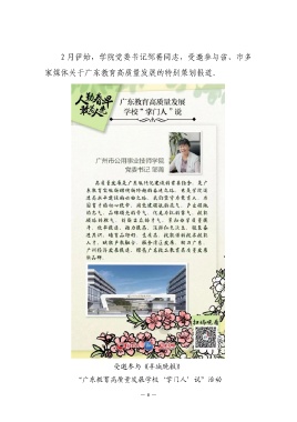 2 月伊始,学院党委书记邹菁同志,受邀参与省、市多 家媒体关于广东教育高质量发展的特别策划报道。 受邀参与《羊城晚报》 “广东教育高质量发展学校‘掌门人’说”活动 — 8 —
