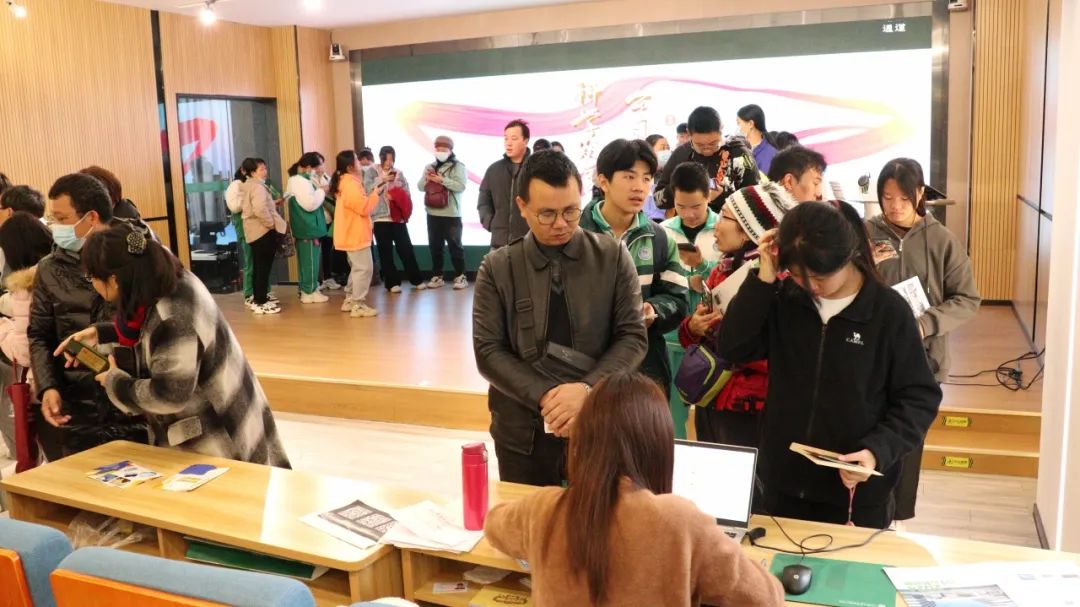 活动现场,学生们报名气氛热烈,咨询、测试、预定名额一步到位。