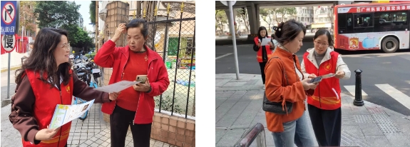 学院师生还将志愿服务送到社区群众的家门口。今年3月,恰逢第114个“三八”国际劳动妇女节,学院开展巾帼志愿服务,行政第一党支部及行政第二党支部的巾帼党员志愿者走进社区开展“守护平安广州 全民防范我践行”交通安全宣传志愿服务,提升为民服务意识。