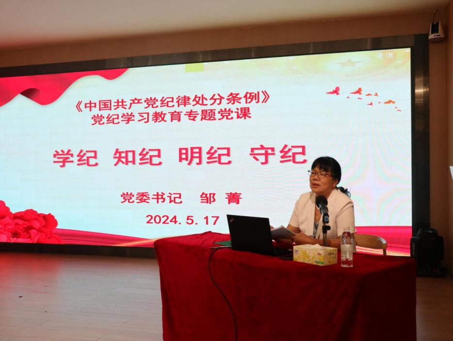 5月17日,专职纪委书记刘梅红开展党纪学习教育专题辅导