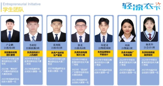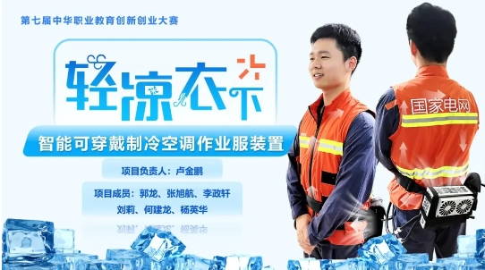 该项目由学院刘婷老师团队指导,21机电4班卢金鹏、21机电5班张旭航同学等7位同学组队参与。该项目将服装设计、制冷技术和电气控制技术有机结合,设计由空调作业服本体、制冷主机及电池三大部件组成的可穿戴制冷作业服,有效解决高温工作者因天气炎热造成的身体不适,用科技护航高温作业工作者。