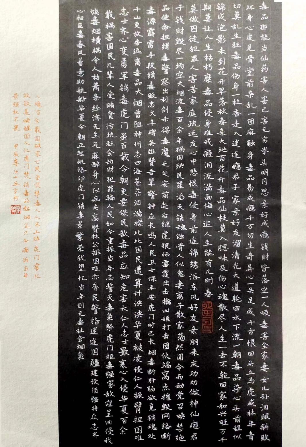 近日,学院2024年校园文化艺术节“礼赞伟大祖国 笔墨书写青春”青年书法文化交流活动暨学生书法比赛落下帷幕。历经两个多月的精心组织,共征集师生毛笔书法、硬笔书法作品76件,经过评委认真遴选,纪晓婷等44位同学的作品评为一二三等奖,将代表学院参加市级禁毒主题书法比赛。