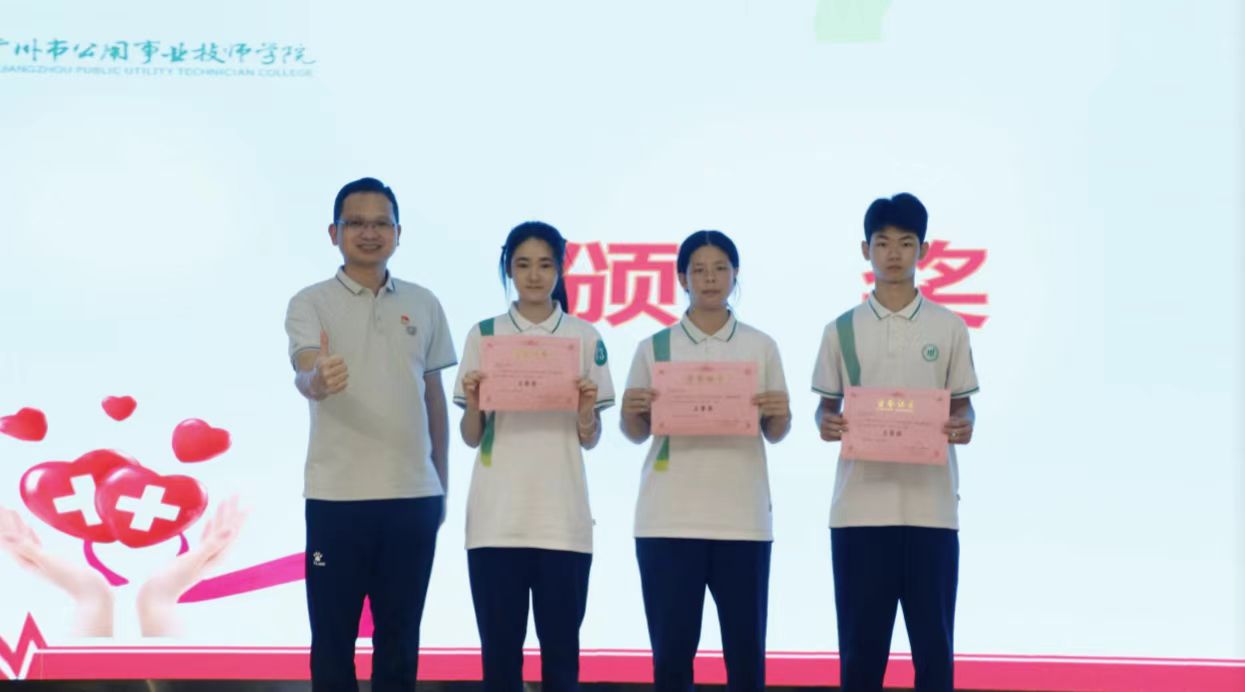 学院专职党委副书记陈苹为优秀选手颁发“校园应急救护之星”证书