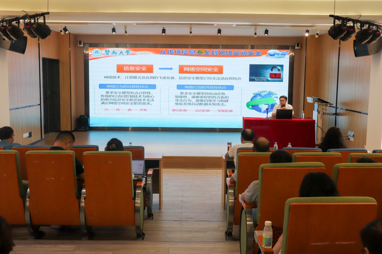 6月20日下午,学院信息中心在东华南校区举办“网络信息安全防范策略暨信息化业务培训”专题讲座,特邀暨南大学网络安全检测与防护工程中心副主任、网络安全领域专家魏林锋教授等专家进行授课,各部门的负责人、分管信息化中层干部、经办人及信息文创产业系网络通讯相关专业学生参训,讲座由信息中心主任叶春晓主持。