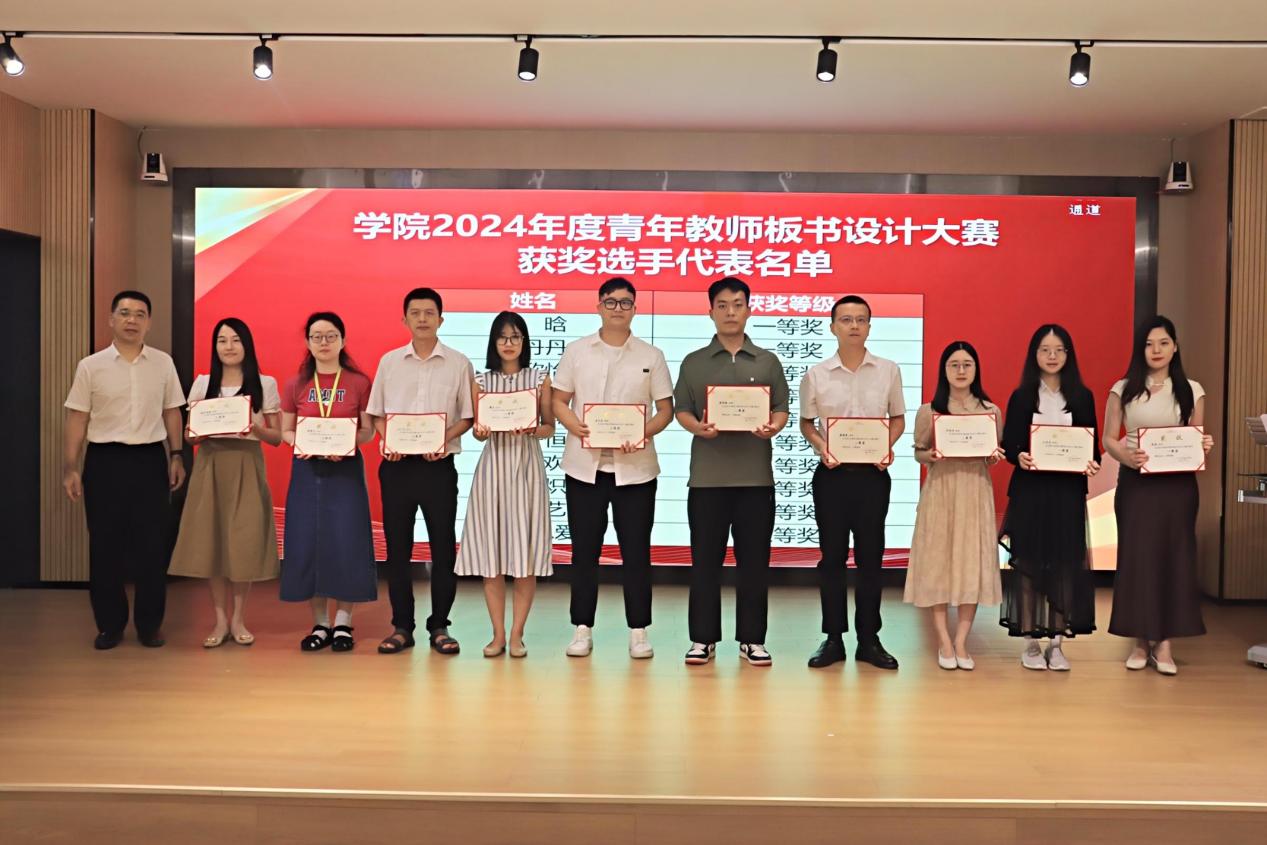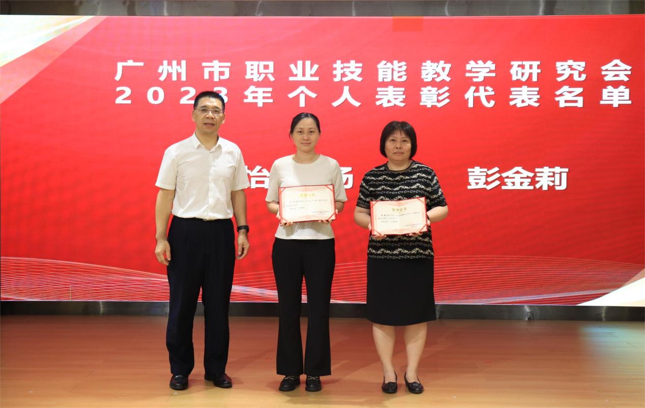 学院副院长王尚军为学院获评中国职协2023年教科研成果教师代表、广州市职业技能教学研究会2023年教研工作先进个人与积极分子获奖教师代表、学院2024年青年教师板书设计比赛获奖教师颁发奖状。