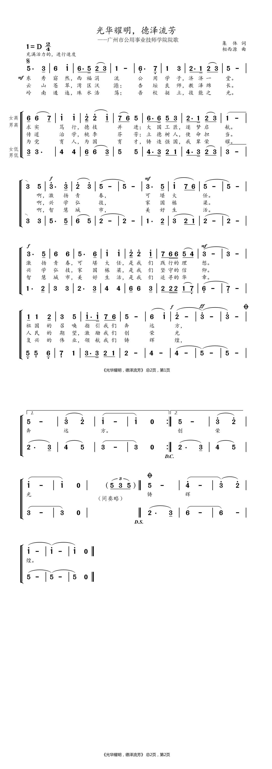 学院校歌歌谱