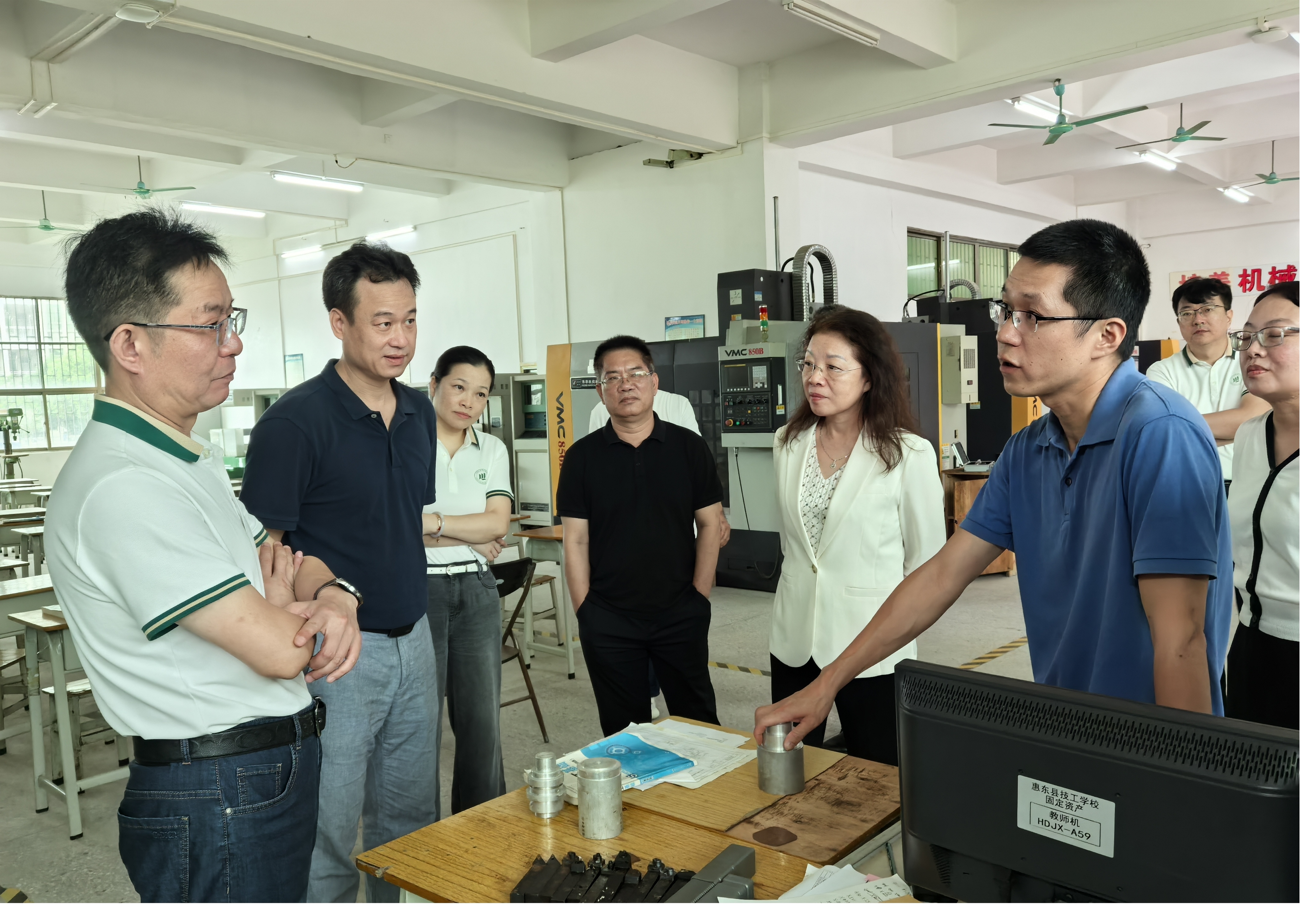 7月31日,学院鲁储生院长、王尚军副院长,会同清远市技师学院高湘琴党委书记、邓建军副院长一行,共同前往惠东县技工学校开展对口协助交流活动。与会人员深入惠东县技工学校教学场地、实训车间等区域进行实地考察,详细了解协助学校的办学条件、师资队伍建设、专业设置、学生就业等方面的情况。随后,三方召开座谈会,就师资队伍建设、专业建设、教学教研、技能竞赛、产教融合、招生就业和社会培训等方面的合作共建展开交流。