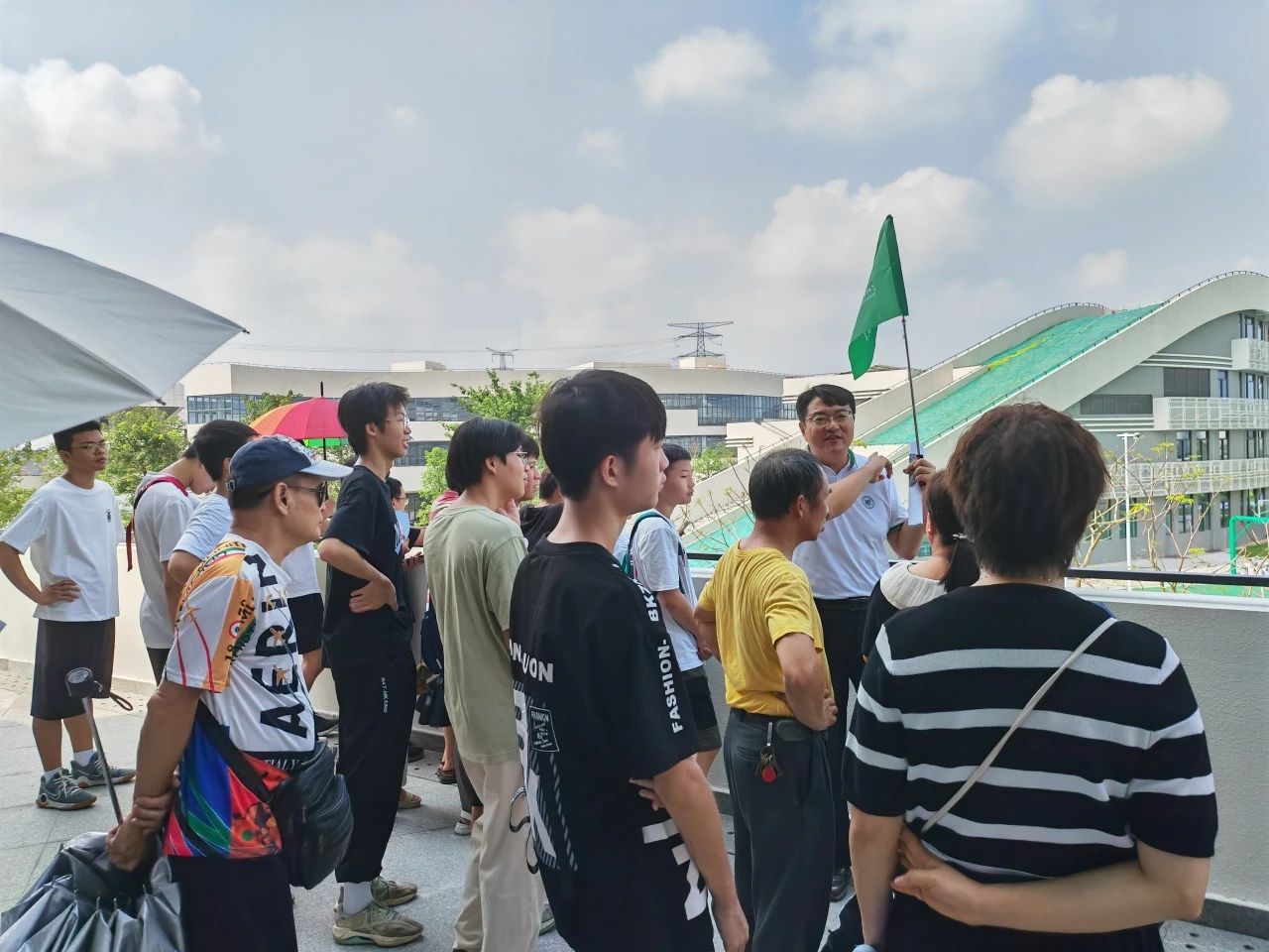 在招生就业处和各产业系教师的带领下,学生和家长们分批次出发,从行政楼上连廊,行经南饭堂,走进学生宿舍参观……老师们在探校活动中担任活动向导,热情洋溢地为大家介绍学院的校园文化、建筑功能及育人特色。