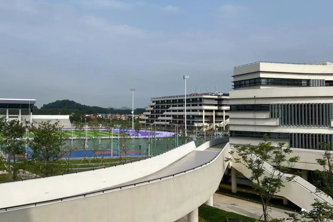 学院设计布局突出岭南、山水、人文、行业、低碳五大特色,连廊联通校园全部楼宇,不同的教学空间形成了连续的自由形态,建筑的局部架空、空中活动平台和退台等设计,汇聚了不同尺度的成长空间。