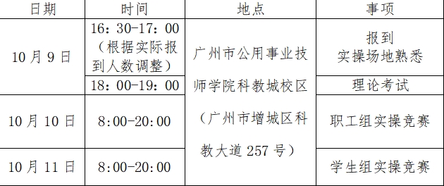 二、竞赛地点:广州市公用事业技师学院科教城校区(广州市增城区科教大道257号)